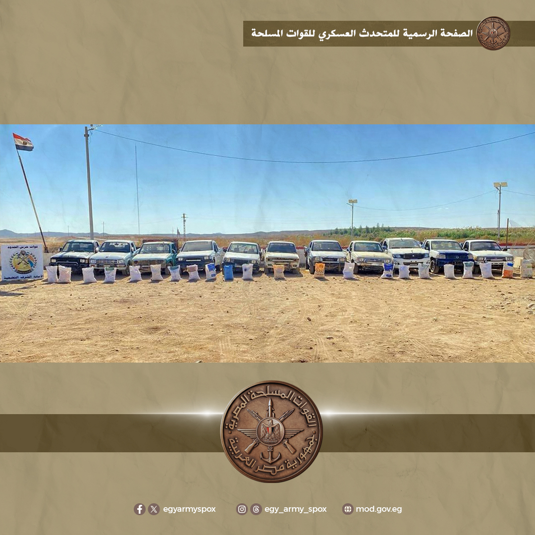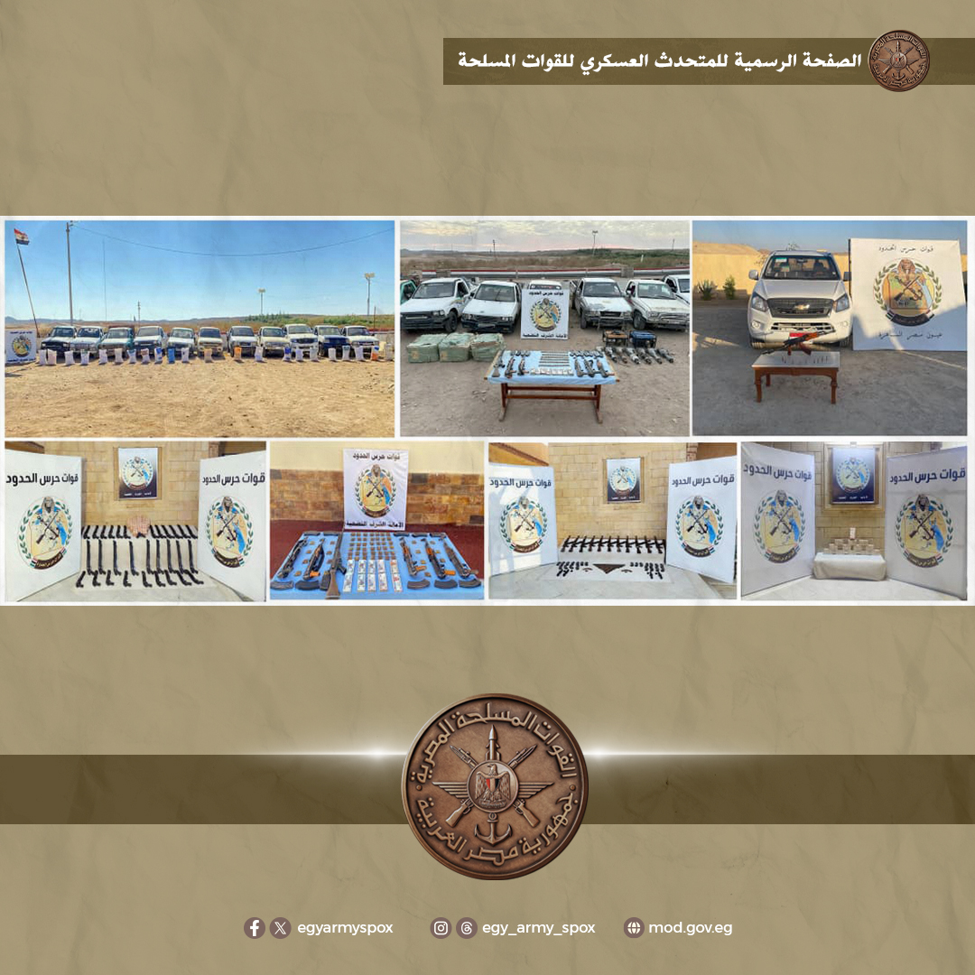 إستمراراً لجهود القوات المسلحة فى تأمين الحدود البرية والساحلية للدولة المصرية للحفاظ على الأمن القومى المصرى قامت قوات حرس الحدود بتوجيه عدد من الضربات القاصمة ضد العناصر الإجرامية والخارجة عن القانون والمهربين على كافة الإتجاهات الإستراتيجية للدولة .