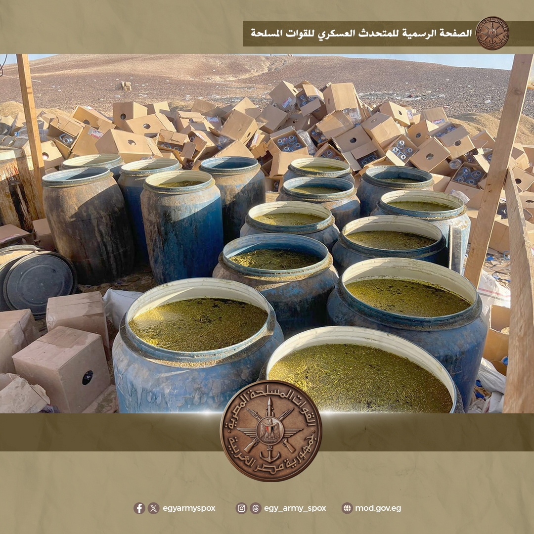 حيث تمكنت قوات حرس الحدود من ضبط مصنع وعدد من المخازن لتصنيع المواد المخدرة وذلك بعد ورود معلومات تفيد بقيام عدد من المهربين بإستغلال إحدى المناطق الجبلية بشبه جزيرة سيناء لتصنيع وتخزين المواد المخدره .