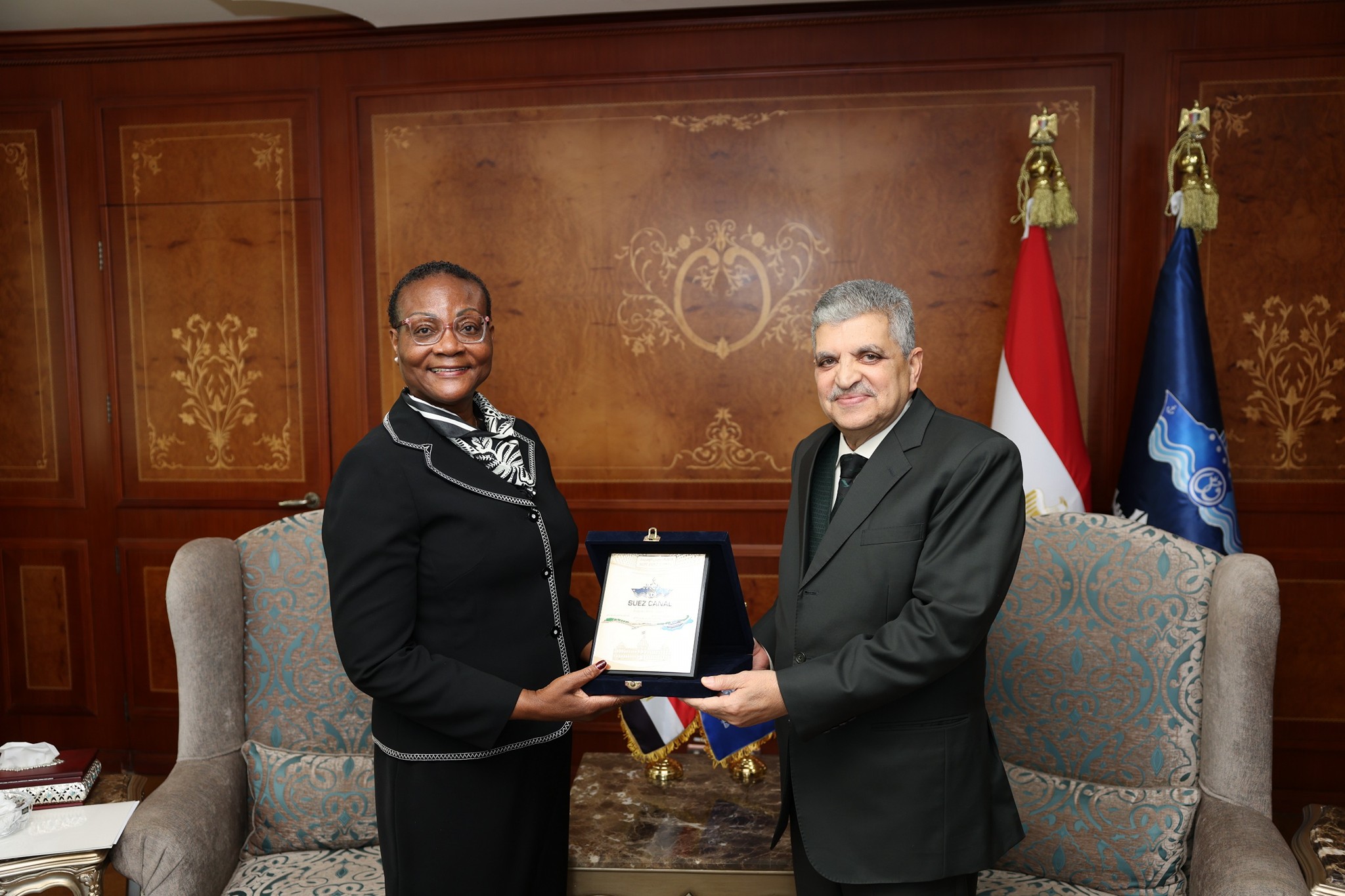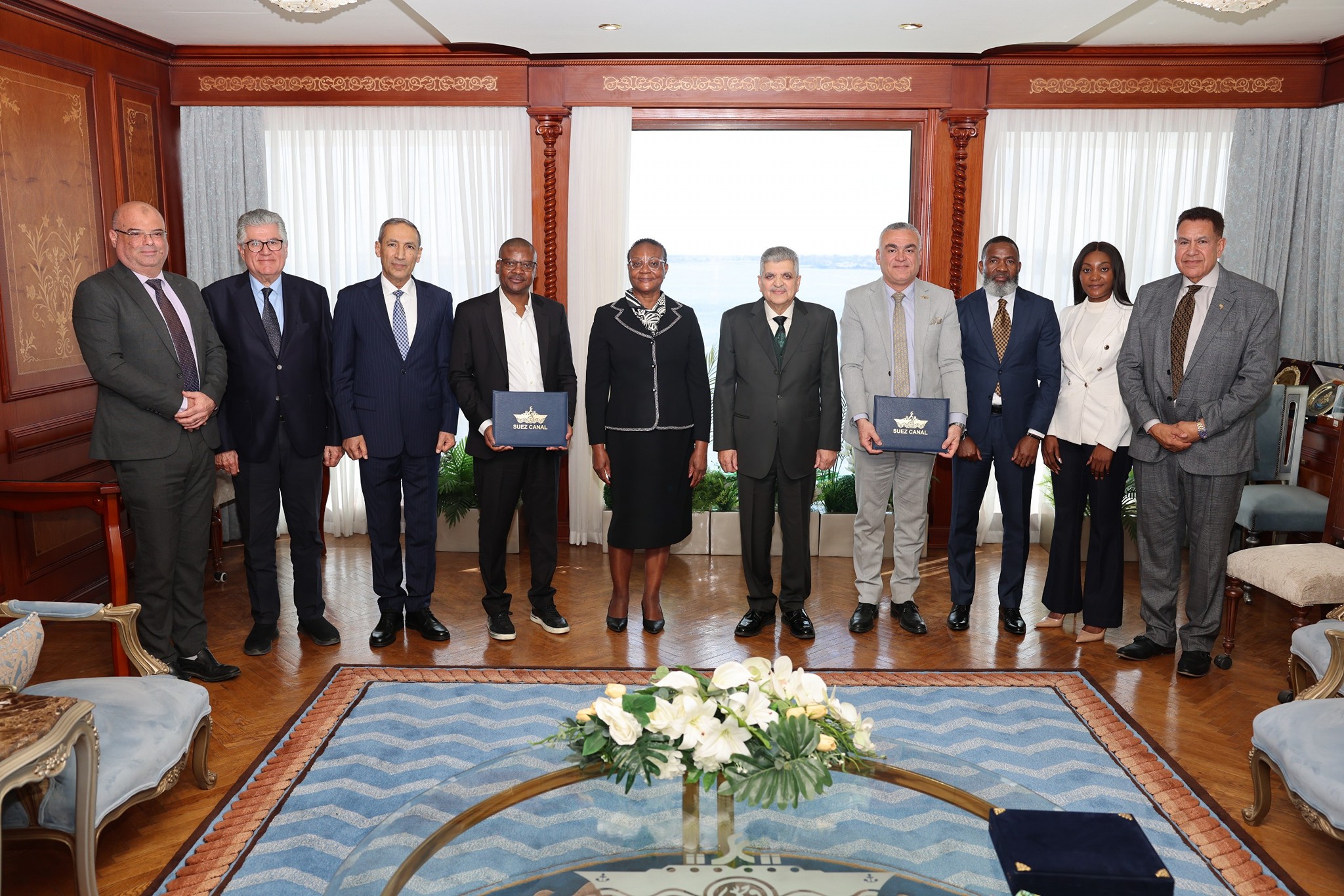 تتويجاً لجهود التسويق الخارجي في إفريقيا، شهد الفريق أسامة ربيع رئيس هيئة قناة السويس، والسيدة / نانجيولا هاميونيلا رئيس هيئة الموانئ الناميبية، مراسم توقيع مذكرة تفاهم للتعاون في المجالات ذات الاهتمام المشترك، بحضور الفريق أشرف عطوة نائب رئيس الهيئة، وعدد من أعضاء مجلس إدارة الهيئة، والمهندس عبد الحكيم عبد الناصر، وذلك بمقر الهيئة بمبنى الإرشاد بمحافظة الإسماعيلية.