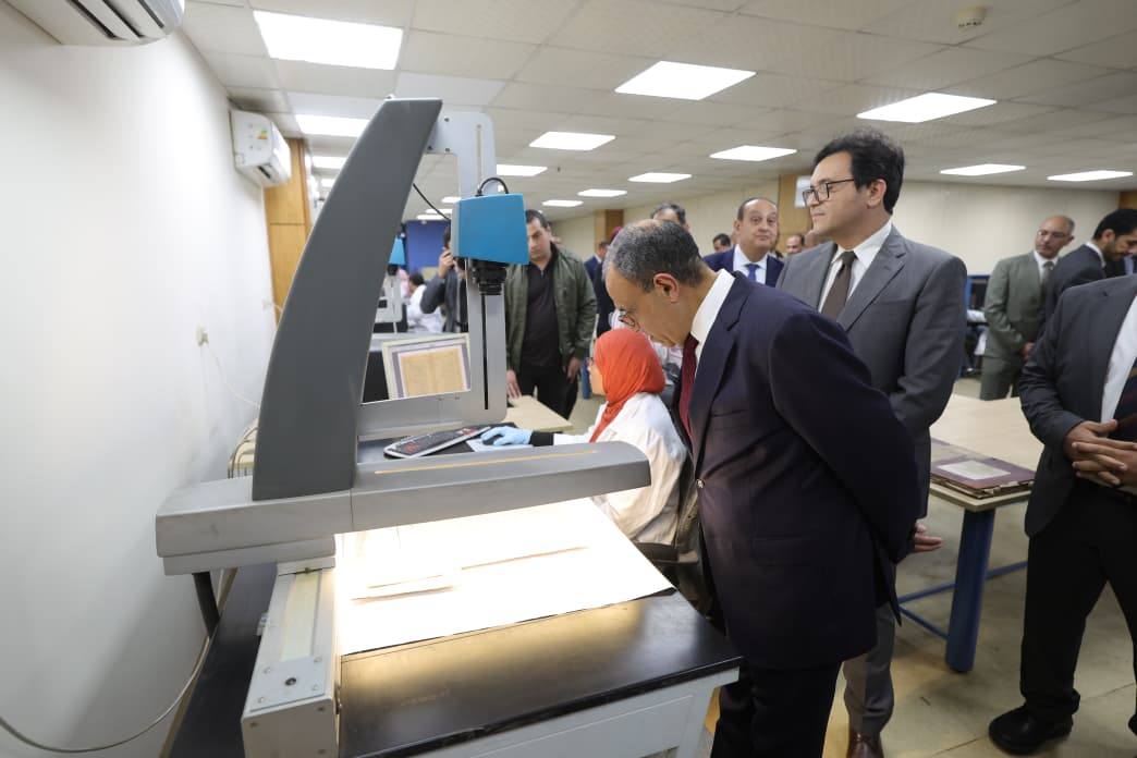 جاء ذلك بحضور الدكتور أسامة طلعت رئيس مجلس إدارة الهيئة العامة لدار الكتب والوثائق القومية، حيث تفقد الوزيران غرف الاطلاع على الوثائق، ومركز الرقمنة، ومعامل الترميم، واطلعا على الإمكانات الفنية والتقنية المستخدمة في حفظ وترميم الوثائق والمستندات الرسمية.