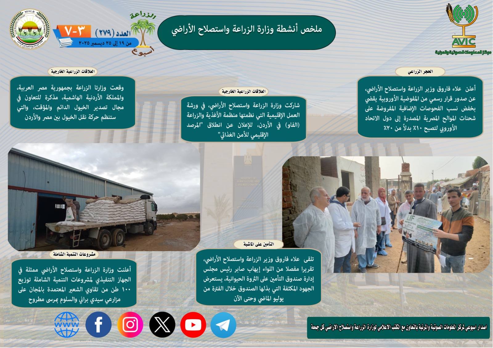 الحصاد الإسبوعي لـ وزارة الزراعة من الفترة 19 وحتى 25 ديسمبر الجاري