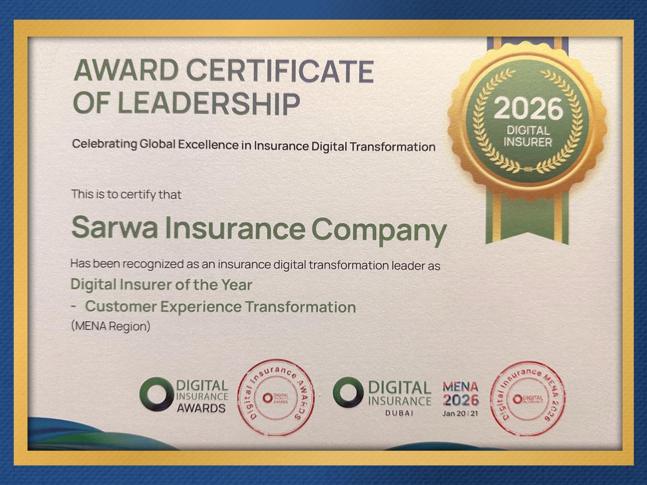 Expressing his pride in the achievement, Ahmed Khalifa, Managing Director of Sarwa Insurance, said: “Winning the “Customer Experience Transformation” award is a testament to our commitment to placing the customer at the heart of every innovation we deliver. Through SarwaNow, we have begun transforming the traditional insurance journey into a fast, transparent, and secure digital experience. This recognition demonstrates how regulatory compliance and technological innovation can work hand in hand to create real customer value and pave the way for a smarter future for motor insurance in particular.”