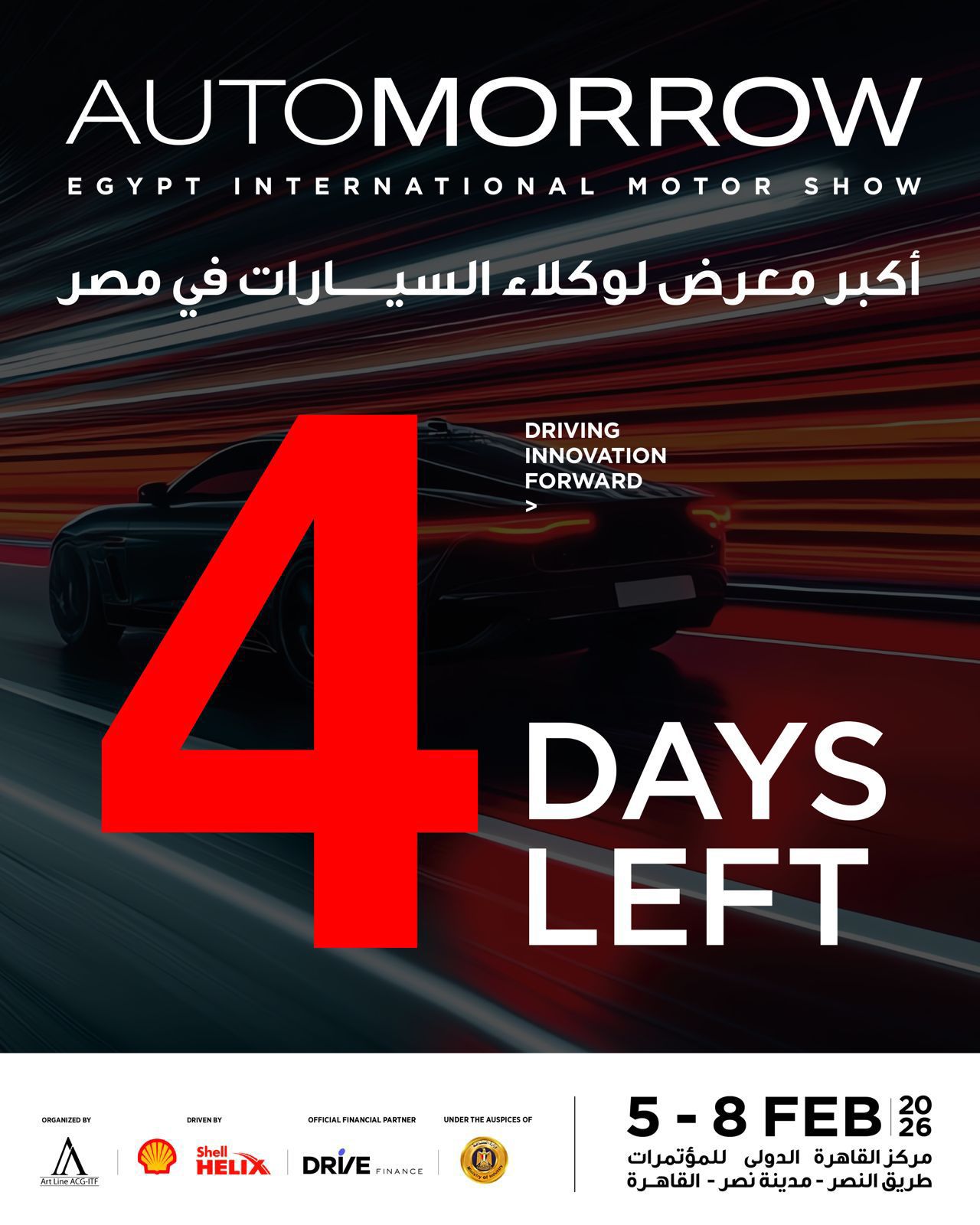 ويُنظم هذا الحدث الدولي للسيارات شركة « ART LINE ACG-ITF» في الفترة من 5 إلى 8 فبراير 2026 بمركز القاهرة الدولي للمؤتمرات «مدينة نصر».