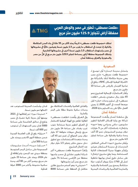 «طلعت مصطفى» تُطوِّر في مصر والوطن العربي محفظة أراضٍ تتجاوز 125.9 مليون متر مربع