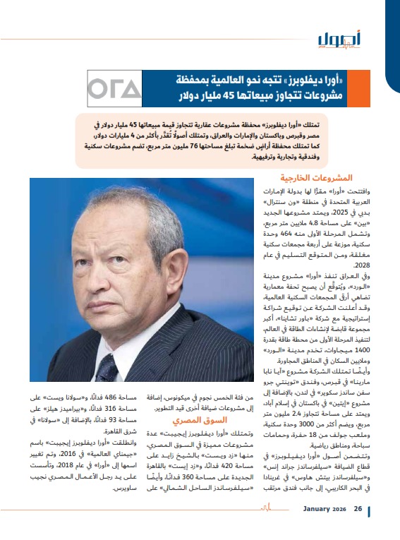 «أورا ديفلوبرز» تتجه نحو العالمية بمحفظة مشروعات تتجاوز مبيعاتها 45 مليار دولار