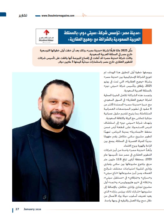 مثَّل 2025 عامًا فارقًا لشركة «مدينة مصر»، وذلك بعد أن خطت أولى خطواتها التوسعية خارج مصر في المملكة العربية السعودية.