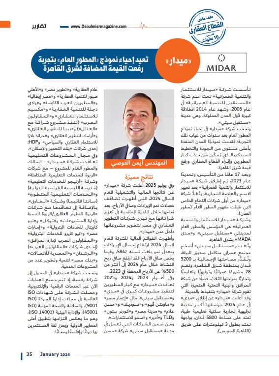 «ميدار» تعيد إحياء نموذج «المطور العام» بتجربة رفعت القيمة المضافة لشرق القاهرة