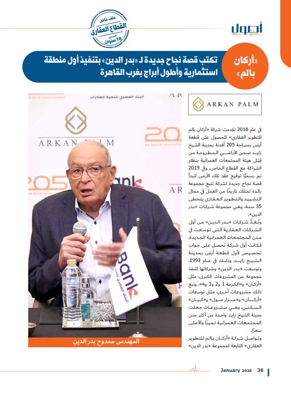 «أركان بالم» تكتب قصة نجاح جديدة لـ «بدر الدين» بتنفيذ أول منطقة استثمارية وأطول أبراج بغرب القاهرة