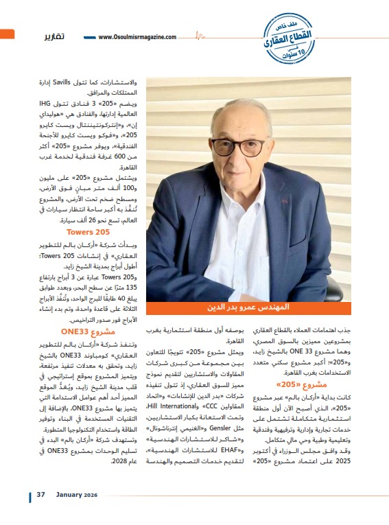 وتواصل شركة «أركان بالم للتطوير العقاري» التابعة لمجموعة «بدر الدين» جذب اهتمامات العملاء بالقطاع العقاري بمشروعين مميزين بالسوق المصري، وهما مشروع ONE 33 بالشيخ زايد، و«205»؛ أكبر مشروع سكني متعدد الاستخدامات بغرب القاهرة.
