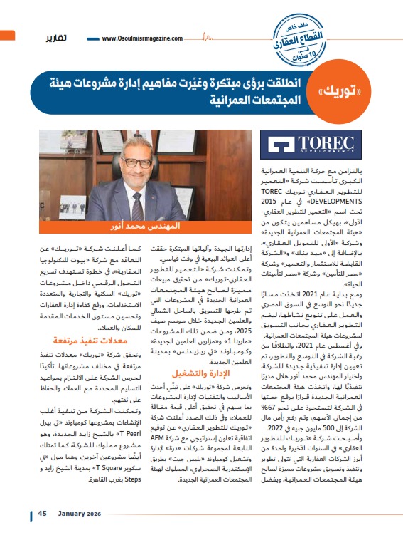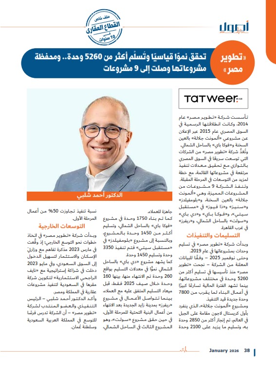 وحتى نوفمبر 2025 – وفقًا للبيانات المعلنة من الشركة – نجحت «تطوير مصر» منذ تأسيسها في تسليم أكثر من 5260 وحدة في مختلف مشروعاتها، بينما تشهد الفترة الحالية تسارعًا كبيرًا في أعمال البناء لما يقرب من 7800 وحدة جديدة قيد التنفيذ.