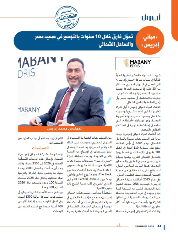كما يشهد مشروع «دي باي» بالساحل الشمالي نموًّا في معدلات التسليم بواقع 260 وحدة تم الانتهاء منها، بينها 160 وحدة خلال صيف 2025 فقط، قبل ميعاد التسليم المتفق عليه مع العملاء، بينما تتواصل الأعمال في مشروع «ريفرز» بمدينة زايد الجديدة بعد الانتهاء من أعمال البنية التحتية للمرحلة الأولى، في حين حقق مشروع «سولت»، وهو المشروع الثالث في الساحل الشمالي، نسبة تنفيذ تجاوزت 50% من أعمال المرحلة الأولى.