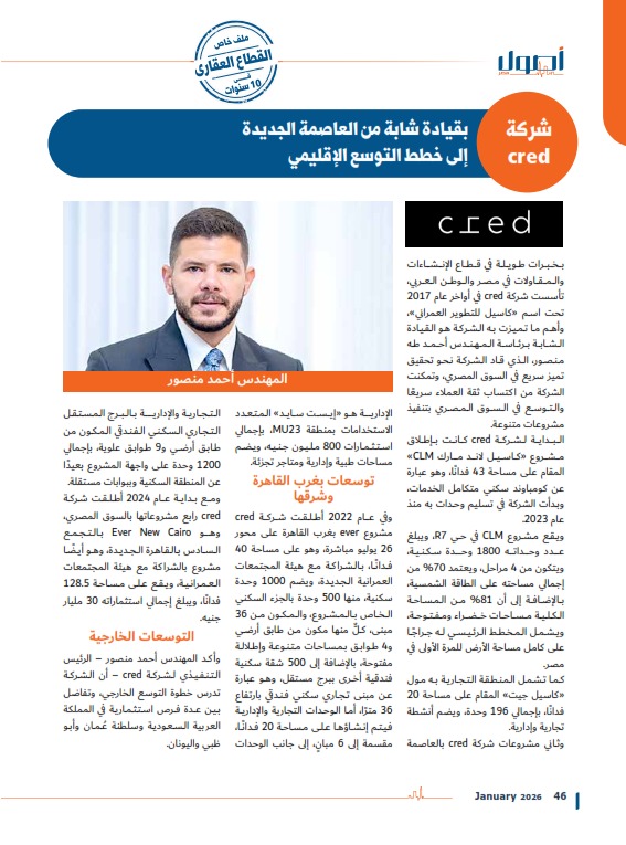 وأكد المهندس أحمد منصور – الرئيس التنفيذي لشركة cred – أن الشركة تدرس خطوة التوسع الخارجي، وتفاضل بين عدة فرص استثمارية في المملكة العربية السعودية وسلطنة عُمان وأبو ظبي واليونان.