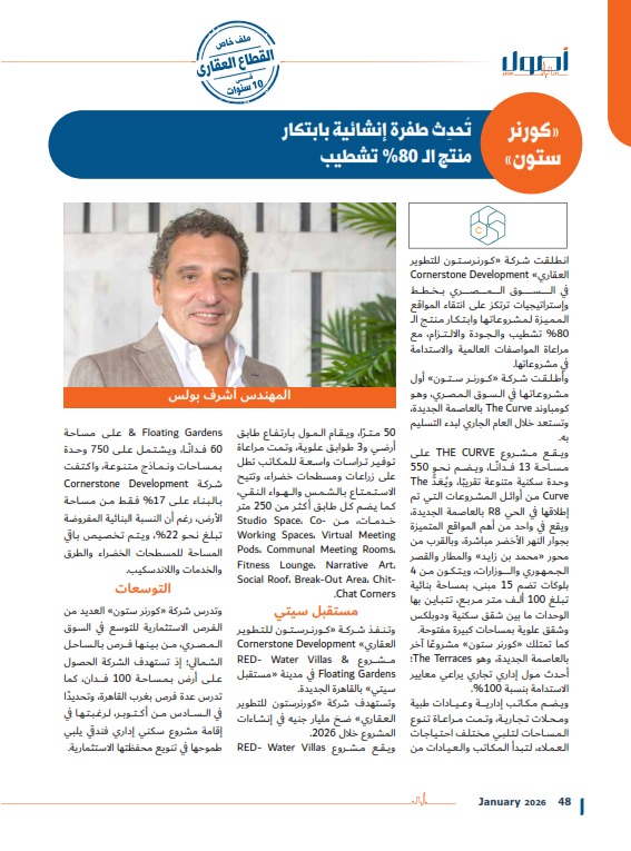 وأطلقت شركة «كورنر ستون» أول مشروعاتها في السوق المصري، وهو كومباوند The Curve بالعاصمة الجديدة، وتستعد خلال العام الجاري لبدء التسليم به.
