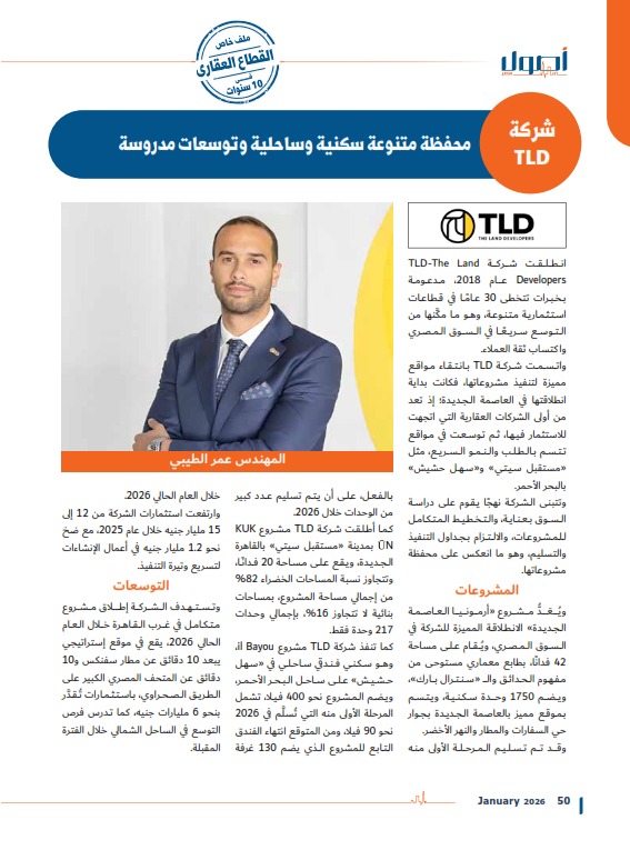 شركة TLD محفظة متنوعة سكنية وساحلية وتوسعات مدروسة