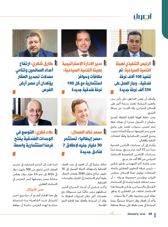 وأكد أن العقار يظل احتياجًا مستمرًّا، بينما السياحة في مصر مقبلة على مرحلة مختلفة تمامًا، مشيرًا إلى أن العجز في عدد الغرف الفندقية واستهداف الدولة الوصول إلى 30 مليون سائح بحلول 2030 يفتحان المجال بقوة أمام الاستثمار في الغرف والوحدات الفندقية.