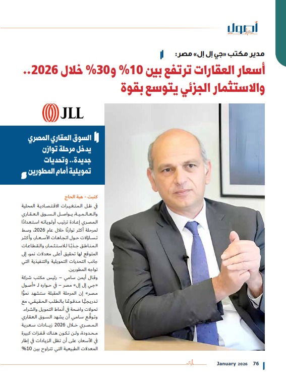 وقال أيمن سامي – رئيس مكتب شركة «جي إل إل» مصر – في حواره لـ «أصول مصر» إن المرحلة المقبلة ستشهد نموًّا تدريجيًّا مدفوعًا بالطلب الحقيقي، مع تحولات واضحة في أنماط التمويل والشراء.