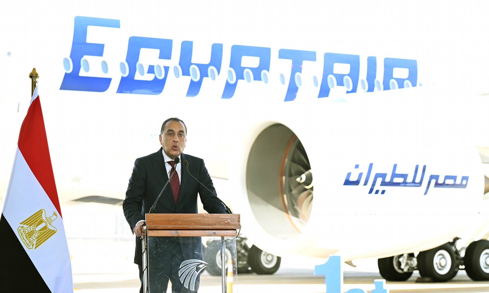 استهل رئيس الوزراء كلمته بالإعراب عن سعادته بحضور والمشاركة فى هذا الحدث المهم، الذي نحتفل فيه بانضمام وتدشين أول طائرة، من طائرات الجسم العريض من طراز Airbus A350-900 إلى أسطول الشركة الوطنية "مصر للطيران"، وذلك فى إطار العقد المبرم مع شركة " Airbus" لتوريد 16 طائرة من هذا الطراز خلال السنوات القليلة القادمة، وذلك بما يسهم فى تعزيز قدرة مصر على تحقيق وتنفيذ الرحلات طويلة المدي لتصل إلى غرب الولايات المتحدة وأقصى شمال وشرق آسيا، مشيرًا إلى أهمية هذه الإضافة لاسطول "مصر للطيران"، التى تأتي ضمن الرؤية الشاملة التى وجه بها فخامة الرئيس عبد الفتاح السيسي، رئيس الجمهورية، والتي تهدف إلى إحداث نقلة نوعية غير مسبوقة في قطاع الطيران المصري وتعزيز كفاءته.