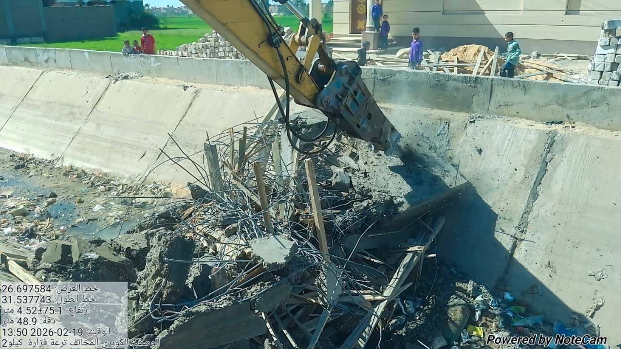 وكانت أجهزة وزارة الرى بمحافظة سوهاج رصدت قيام أحد المواطنين بالتعدي على ترعه فزارة بعمل عدد (٤) أعمدة خرسانية داخل القطاع المائي للترعة لعمل مشاية خرسانية بالمخالفة لقانون الموارد المائية والري رقم ١٤٧ لسنة ٢٠٢١، حيث قامت أجهزة الرى على الفور بتحرير محضر مخالفة، وتم التنسيق مع محافظة سوهاج والأجهزة الأمنية لتوفير الدعم اللازم لتنفيذ الإزالة الفورية للتعدى فى أول أيام شهر رمضان .