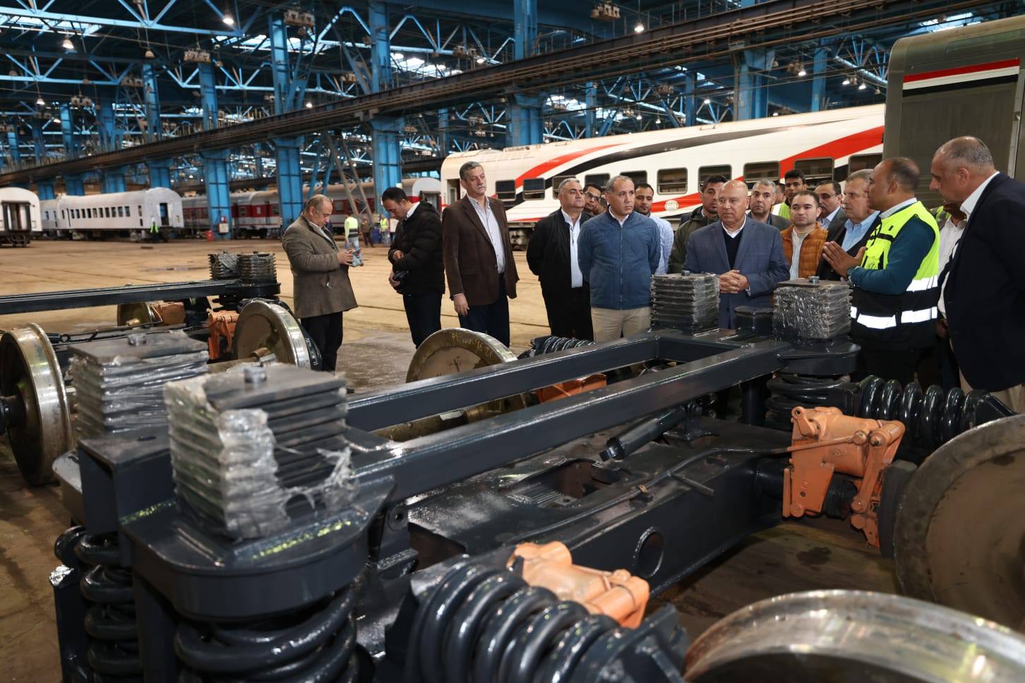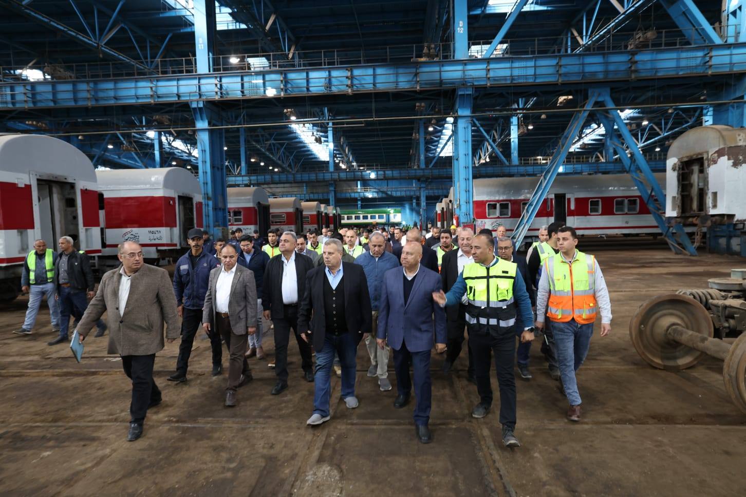 في إطار تنفيذ توجيهات الرئيس عبد الفتاح السيسي رئيس الجمهورية بالتطوير المستمر لمنظومة السكك الحديدية لتقديم أعلى مستويات الخدمة لجمهور الركاب ، أجرى الفريق مهندس كامل الوزير وزير النقل يرافقه المهندس وجدي رضوان نائب الوزير للجر الكهربائي والسكك الحديدية والمهندس/ محمد عامر رئيس هيئة السكك الحديدية أمس جولة تفقدية داخل الورش الرئيسية للسكك الحديدية بمنطقة كوم أبو راضي بمحافظة بني سويف ، حيث تفقد الوزير أقسام الورشة المختلفة مثل أقسام( عمرة بواجى الجانز - عمرة رمان البلي - السروجيه ) بالإضافة الى تفقد عدد من العربات الخاصة بالقطارات التي انتهت الورشة من إعادة تأهيلها وتطويرها تطويرا شاملا ،حيث تقوم الورشة بإعادة تأهيل وتطوير جميع أنواع العربات الموجودة بالسكة الحديد ( الإسباني - VIP- تحيا مصر ..) بالإضافة إلى قطارات النوم