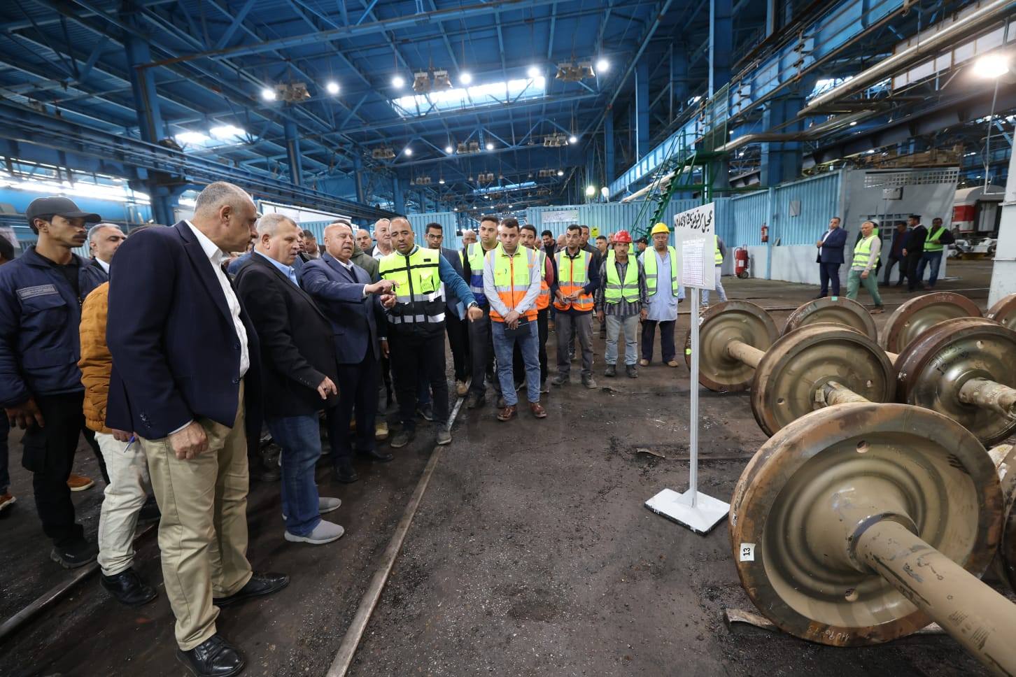 مؤكدًا على الإستمرار في العمل على مدار الساعة لخدمة جمهور الركاب من خلال وسائل نقل متنوعة و آمانه وسليمة ونظيفة، لافتًا إلي ضرورة العمل المستمر على زيادة الإنتاجية وأن تتم كافة الأعمال الخاصة بإعادة تأهيل وتطوير العربات بجودة عالية خاصة وأن الوزارة تعمل دائما على أن تكون كافة الورش التابعة لها ومنها كوم ابوراضي على اعلي مستوي من الكفاءة الإنتاجية والكفاءة الفنية ،مشيرا الى أهمية لجنتي المشتريات والحوافز ، وان الحافز لمن يستحق ، بالإضافة إلي ضرورة العمل المستمر للقضاء على اي ظاهرة سلبية تؤثر على الخدمة المقدمة ، وأن يتسابق الجميع لخدمة جمهور الركاب ،لافتًا إلى أن على كل عامل ومهندس أن يتقن عمله، وأن يؤدي كافة المهام الموكلة إليه باعلي درجه من الاحترافية والكفاءة ، بالإضافة إلى الإستغلال الأمثل لكافة الأصول والعمل على زيادة موارد الهيئة وأن يتم الإستغلال الأمثل لكافة أنواع الخردة والمحافظة على أملاك الهيئة ، وكذا استمرار منظومة التحديث والتطوير المستمر لكافة عناصر السكك الحديدية لتقديم خدمة بجودة وأمن وسلامه ورفاهية وتميز موجها قيادات هيئه السكك الحديدية بضرورة المحافظة على مواعيد القطارات ونظافة كافة المحطات والقطارات وخلق بيئة عمل مناسبة لكافة العاملين والاهتمام الدائم والمستمر بالارتقاء بمنظومة الخدمات الصحية والاجتماعية والرياضية لهم وعقد اجتماعات دورية معهم