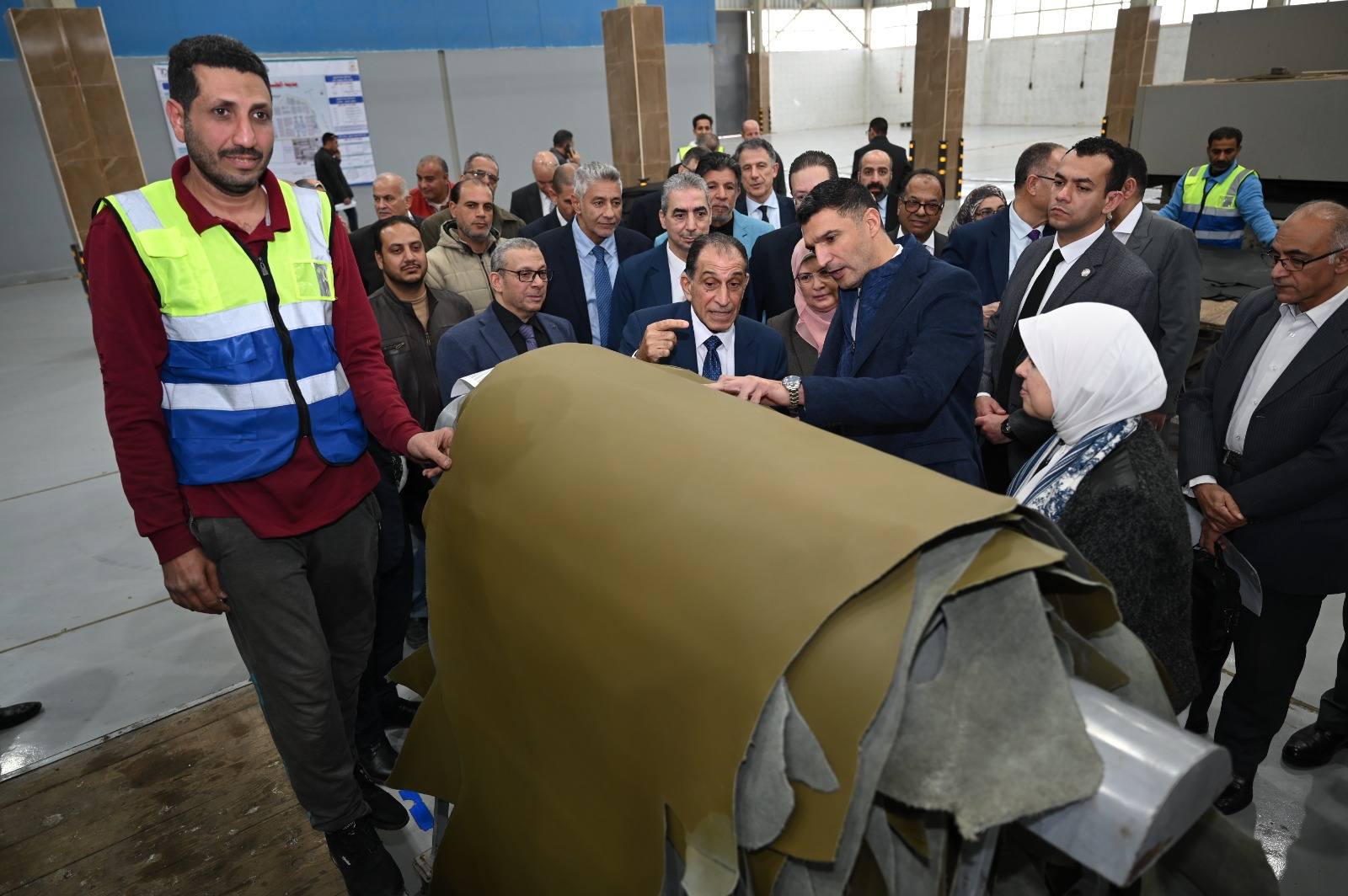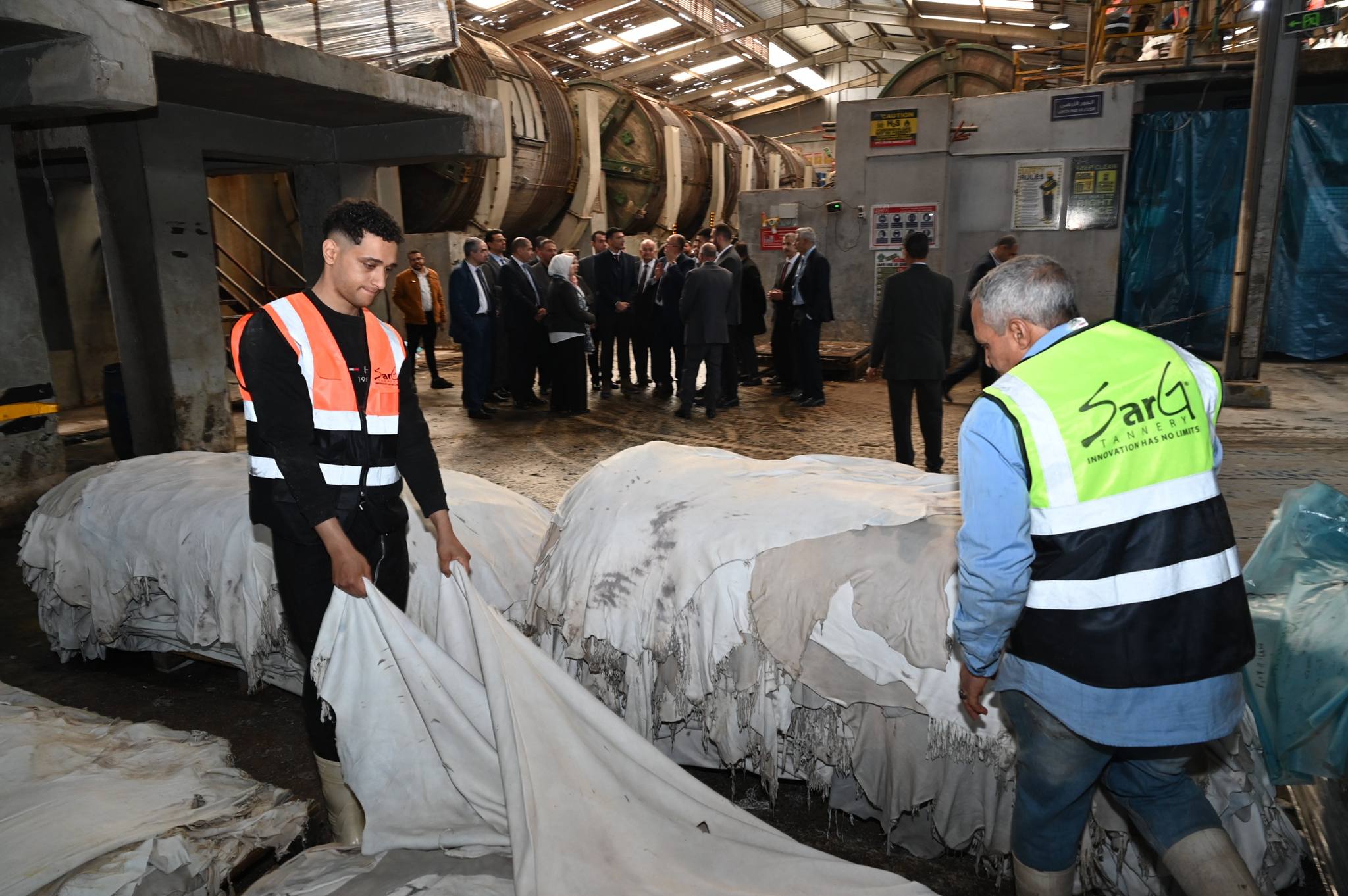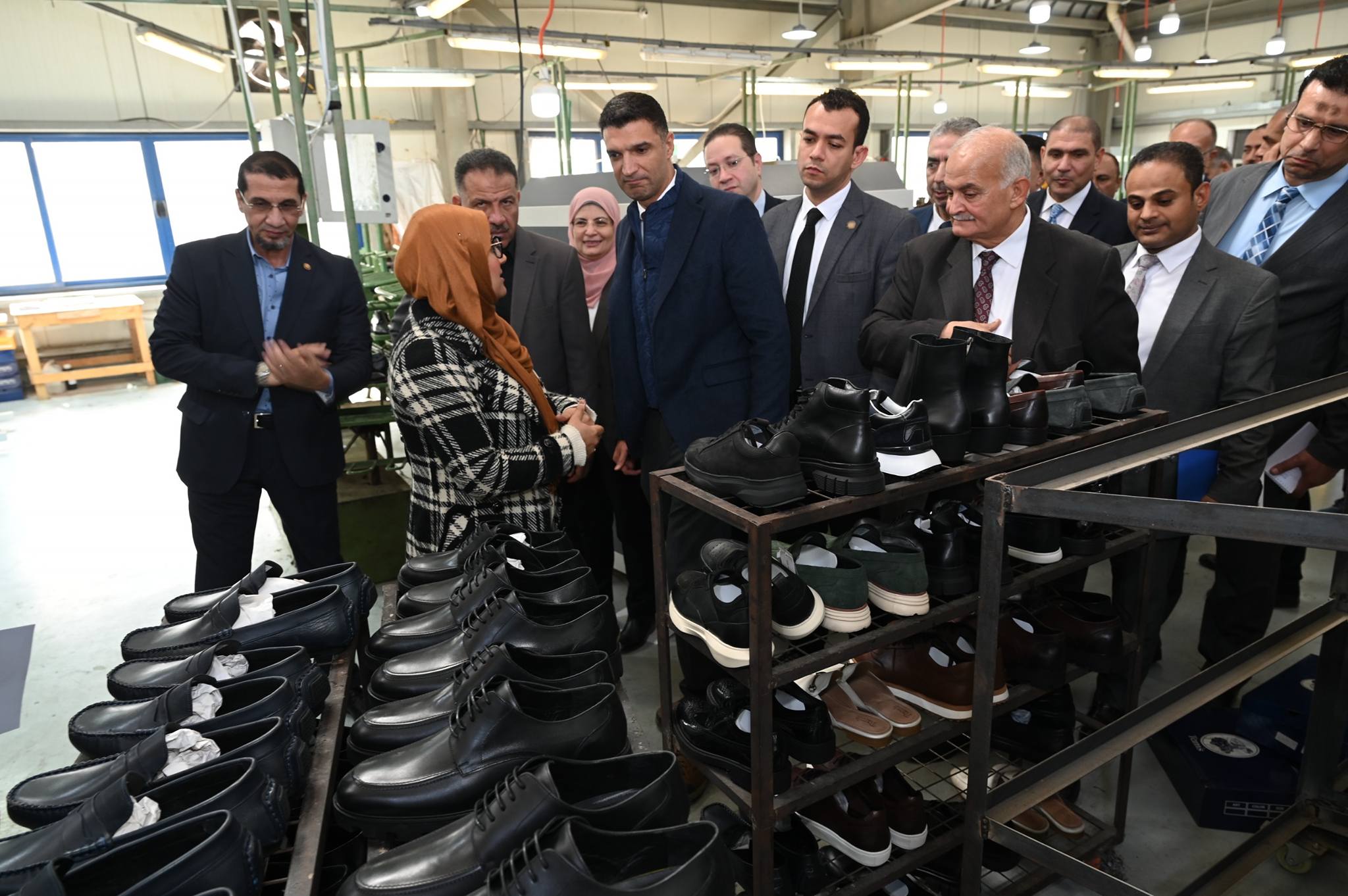 كما شملت الجولة تفقد عدد من المصانع العاملة في منطقة الـ100 مصنع المتخصصة في تصنيع المنتجات الجلدية، حيث تفقد الوزير مصنع شركة تامز لتصنيع الأحذية والمنتجات الجلدية القائم على مساحة ألف متر مربع باستثمارات تبلغ 23 مليون جنيه وطاقة إنتاجية تصل إلى 90 ألف حذاء سنوياً، بنسبة مكون محلي تصل إلى 80%، وتوفر الشركة 68 فرصة عمل مباشرة وغير مباشرة، حيث تفقد الوزير مراحل تصنيع الأحذية المختلفة بدءًا من الخياطة والتجميع وحتى المنتج النهائي، كما تفقد معرضًا للمنتجات.