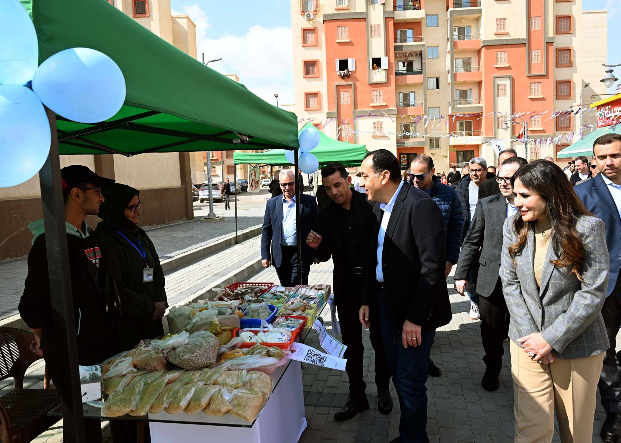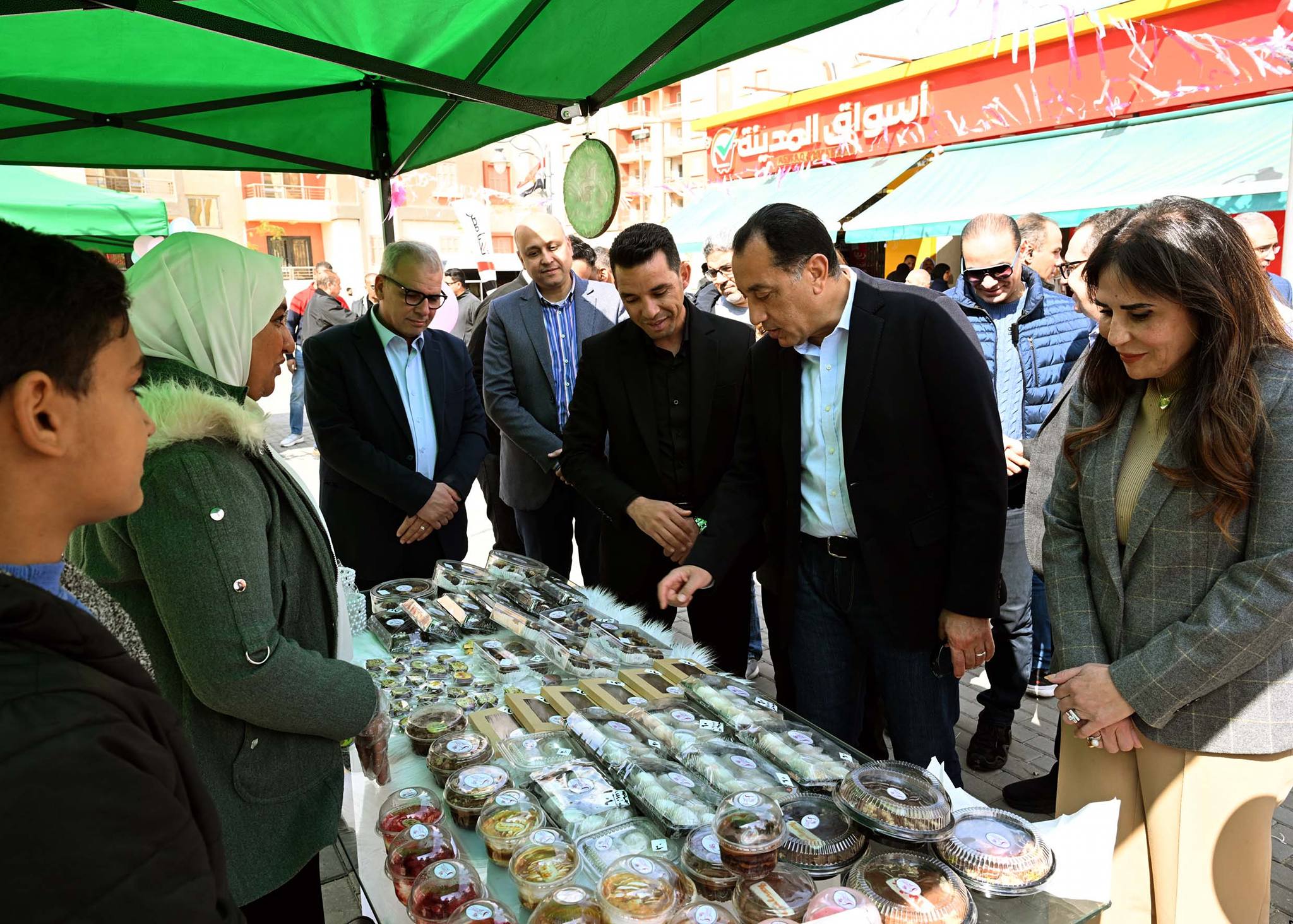 وبدأ رئيس الوزراء ومرافقوه الجولة بزيارة معرض (بازار الخير - أيادي منتجة)؛ حيث استمع إلى شرح من المهندس أحمد العربي، رئيس جهاز تنمية مدينة حدائق العاصمة، أشار فيه إلى أن هذا المكان أُقيم لدعم المشروعات الصغيرة ومتناهية الصغر، وتمكين أصحاب الحرف اليدوية من أبناء المدينة لتسويق منتجاتهم المتنوعة، والتي تشمل المنتجات الغذائية، والعطارة، والخزف، والمشغولات اليدوية والمنزلية وغيرها، بما يسهم في دعم الاقتصاد المحلي وتشجيع ريادة الأعمال، لافتاً إلى أنه تم توفير هذا المكان بالمجان كمساهمة مجتمعية من الجهاز.