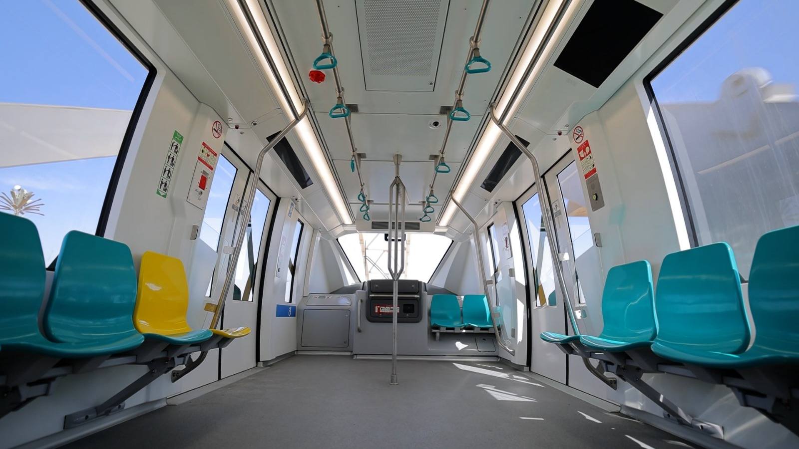 كما يوجد داخل العربات شاشات LED لاستخدامها في تزويد الركاب بمعلومات عن الرحلة أو يمكن استخدامها تجارياً في بث الإعلانات التجارية مدفوعة الأجر ، ويوجد أعلى الأبواب الجانبية شاشة لإعلام الركاب باسم المحطة النهائية ، وتم تخصيص أماكن للكراسي المتحركة الخاصة بأبطالنا ذوى الهمم مزودة بوسائل للتثبيت بالاضافة الى تزويد العربات بخرائط أعلى أبواب الركاب من الداخل تبين المسار عن طريق لمبات مضيئة لمساعدة فاقدي حاسة السمع ، لافتا الى أن المشروع أسهم في توفير عدد 15000 فرصة عمل مباشرة لتصميم وتنفيذ (الاعمال المدنية والكهروميكانيكية) وحوالى 10000 فرصة عمل غير مباشرة في الصناعات والخدمات المرتبطة بالمشروع.