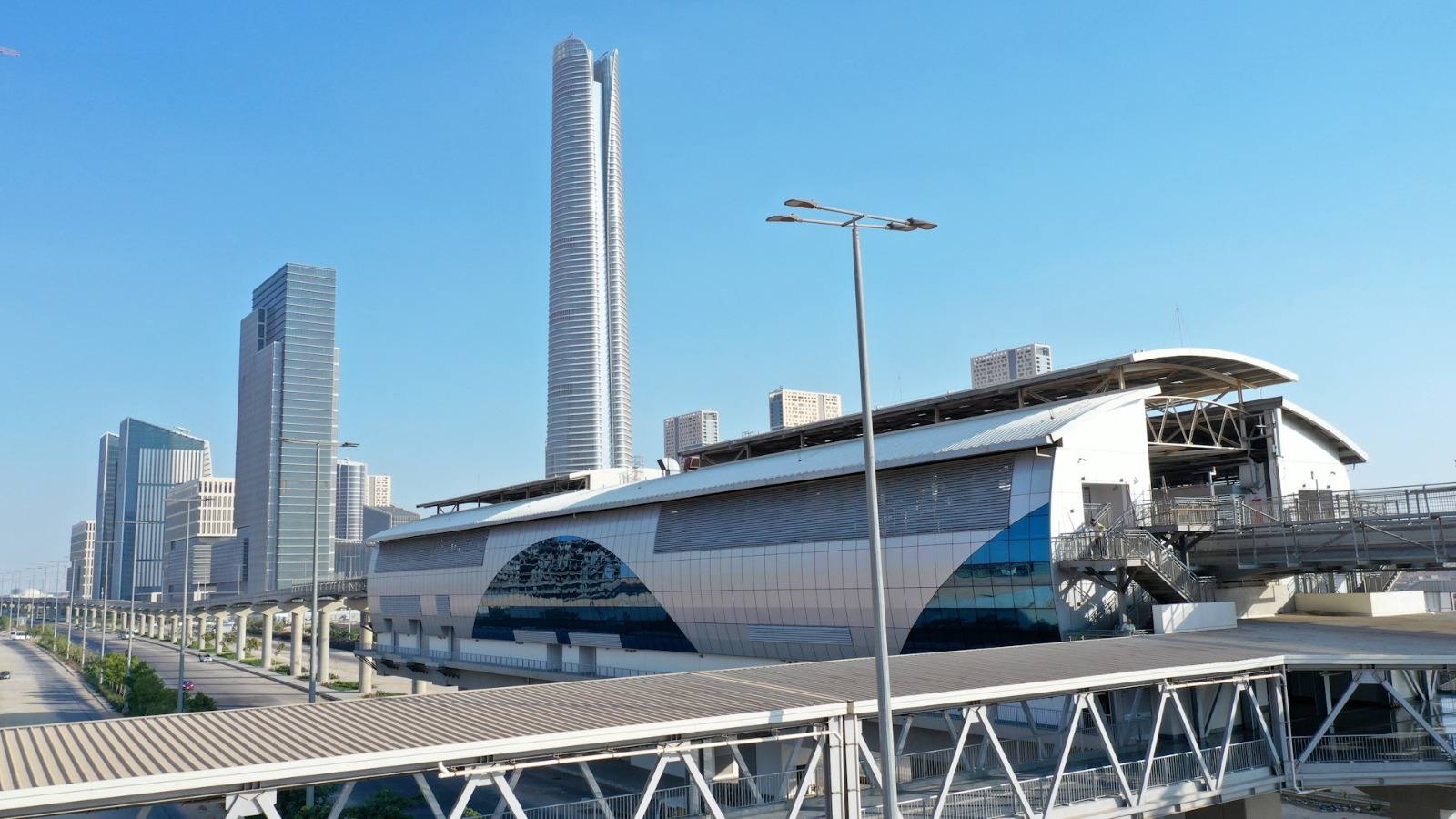 جدير بالذكر أن الطول الإجمالى لمشروعي المونوريل (شرق/غرب النيل) 100 كم بعدد 35 محطة منها 22 محطة بمشروع شرق النيل الذي تم تنفيذه من خلال تحالف مصري فرنسي ( أوراسكوم – المقاولون العرب - ألستوم ) وتبلغ مساحة كل محطة من محطات المونوريل حوالى 2500 م2 طولها 100م وعرضها 25م وتتكون من عدد 2 طابق ( صالة التذاكر - الرصيف ) فيما عدا محطتى استاد القاهرة وجامعة الازهر فتشمل 2 صالة تذاكر لتخفيف الازدحام طبقاً لدراسات النقل بالاضافة الى عدد ( 2 سلم ثابت – 4 سلم متحرك – 2 مصعد ) من خارج المحطة ، وعدد ( 4 سلم ثابت – 4 سلم متحرك – 2 مصعد ) من داخل المحطة بالإضافة إلى تنفيذ مسارات محددة لذوي الهمم بصالات التذاكر وعلى الأرصفة كما يشتمل المشروع على مركز السيطرة والتحكم بنطاق العاصمة الجديدة على مساحة 85 فدان و يشتمل على عدد 13 مبنى