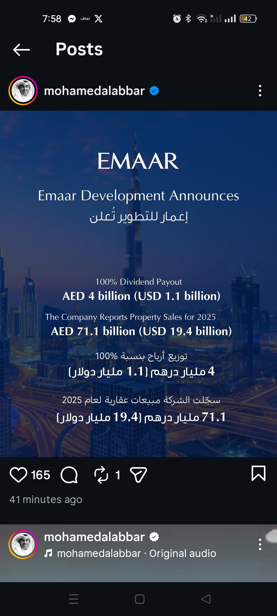 وقال محمد العبار، مؤسس إعمار، إن نتائج 2025 تعكس قوة السوق العقاري في دبي، مدعومة ببيئة تنظيمية مستقرة ورؤية طويلة الأمد، مؤكداً استمرار الشركة في تطوير مجتمعات عمرانية مستدامة.