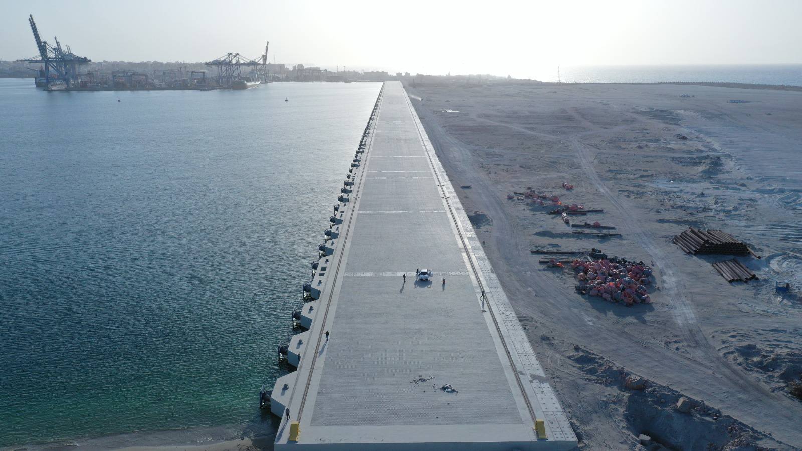 ويشمل المشروع إنشاء محطة حاويات عالمية تعتمد على أحدث التكنولوجيات، بطول رصيف يبلغ 1200 متر من إجمالي طول رصيف 100 البالغ 1680 مترًا، وبعمق يصل إلى 18 مترًا، على مساحة تقدر بنحو 840 ألف متر مربع.