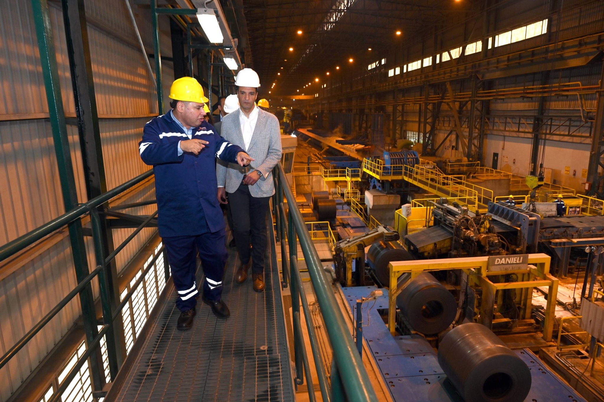 ثم تفقد الوزير مصنع حديد عز بالعين السخنة التابع لمجموعة حديد عز والمقام على مساحة 3 مليون متر مربع برأس مال يبلغ 6.5 مليار جنيه وتبلغ الطاقة الإنتاجية للمصنع 2.2 مليون طن سنويًا، وتوفر المجموعة أكثر من 10 آلاف فرصة عمل مباشرة وأكثر من 10 أضعاف هذا العدد فرص عمل غير مباشرة، وقد بلغت صادرات المجموعة مليار دولار عام 2025 من منتجات (ألواح الصلب المسطح ـ حديد تسليح)، وقد كان في استقبال الوزير السيدة/ عفاف أحمد عز رئيس قطاع تطوير الاعمال بالمجموعة والأستاذ/ علاء أبو الخير نائب رئيس مجموعة عز الصناعية، وخلال الزيارة تفقد الوزير مصنع الاختزال، ومنطقة الأفران والماكينات، ومراحل درفلة الصلب المسطح وصولاً للمنتج النهائي.