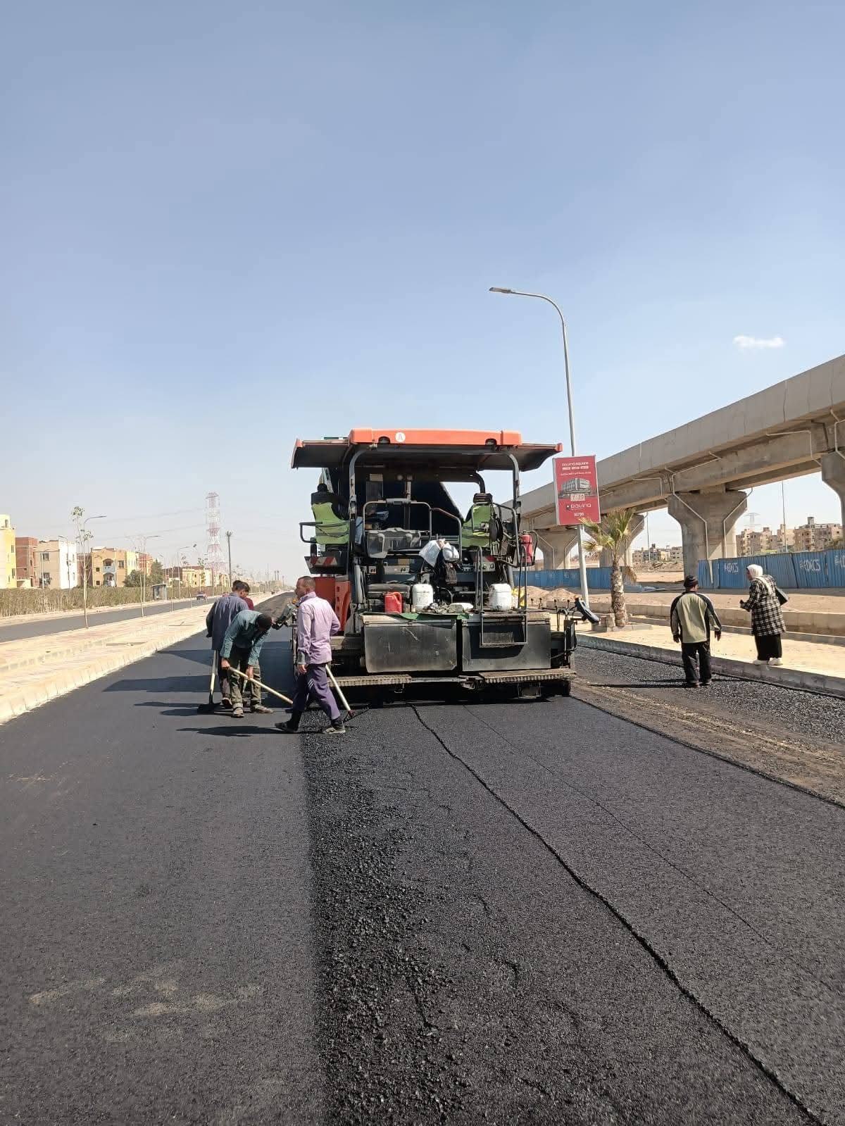 حيث شهدت مدينة حدائق أكتوبر اليوم تنفيذ أعمال الأسفلت بطريق R3 بالحارة المتجهة من وسط المدينة وحتى طريق الفيوم، بمحاذاة مسار القطار السريع .