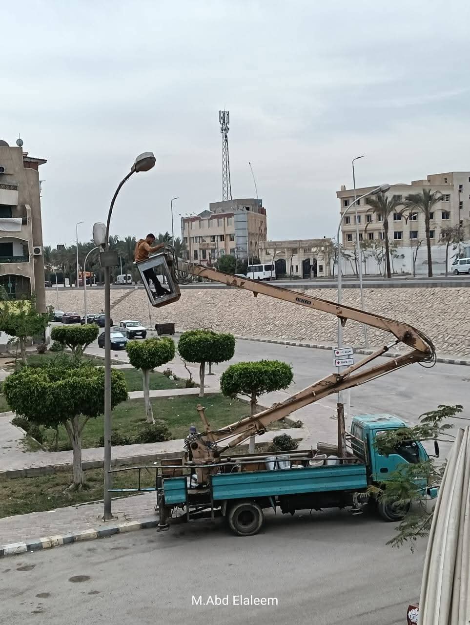 كما تفقد أعمال صيانة أعمدة الإنارة، والتي تضمنت أعمال دهان وتأمين وصيانة الكشافات، مع التأكيد على الالتزام ببرامج الصيانة الدورية ورفع كفاءة الإضاءة بالشوارع، بما يدعم عناصر الأمان ويحد من أي مخاطر محتملة.