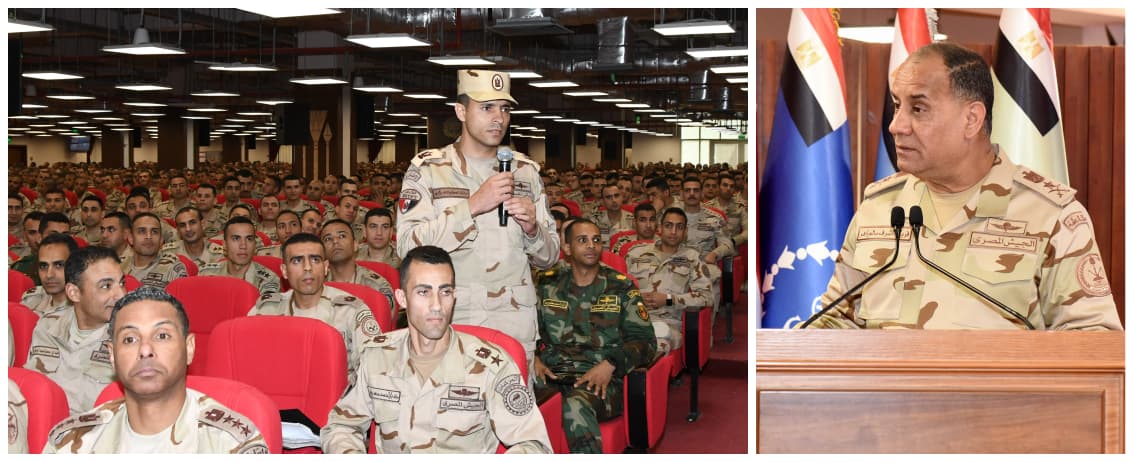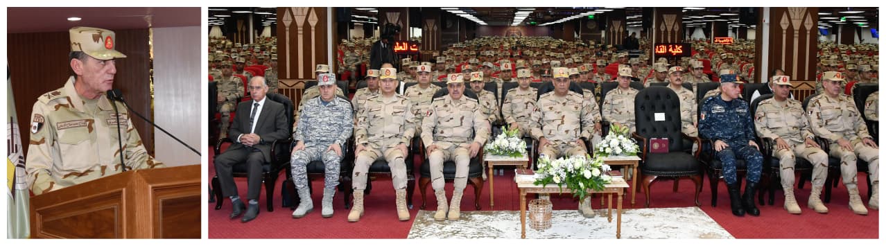 مشيراً إلى حرص القوات المسلحة على إعداد أجيال جديدة قادرة على خدمة الوطن بمختلف المجالات ، كما أوصاهم بالإنضباط الذاتى والوعى والإدراك الصحيح لما يدور حولهم من أحداث ، وضرورة توخى الحذر من التعامل مع وسائل التواصل الإجتماعى بما لا يخل بمنظومة أمن وسلامة القوات المسلحة ، مؤكداً على علاقات التلاحم والتواصل الدائم بين القوات المسلحة والشرطة المدنية باعتبارهما جناحى الأمة فى الحفاظ على أمن وإستقرار الوطن .