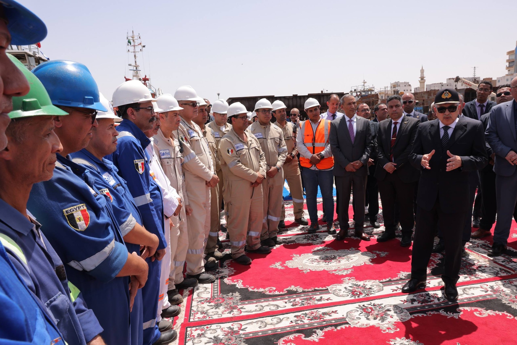 وخلال تواجده وسط أبنائه من العاملين بالشركة، أشاد الفريق أسامة ربيع رئيس الهيئة بجهود العاملين في تنفيذ أعمال بناء الوحدات البحرية بكفاءة وجودة عالية، وحثهم على مواصلة العمل الدؤوب لزيادة الإنتاج والارتقاء بمكانة الشركة التنافسية، فضلاً عن التأكيد على الالتزام بإجراءات ترشيد الطاقة والحفاظ على الأصول.