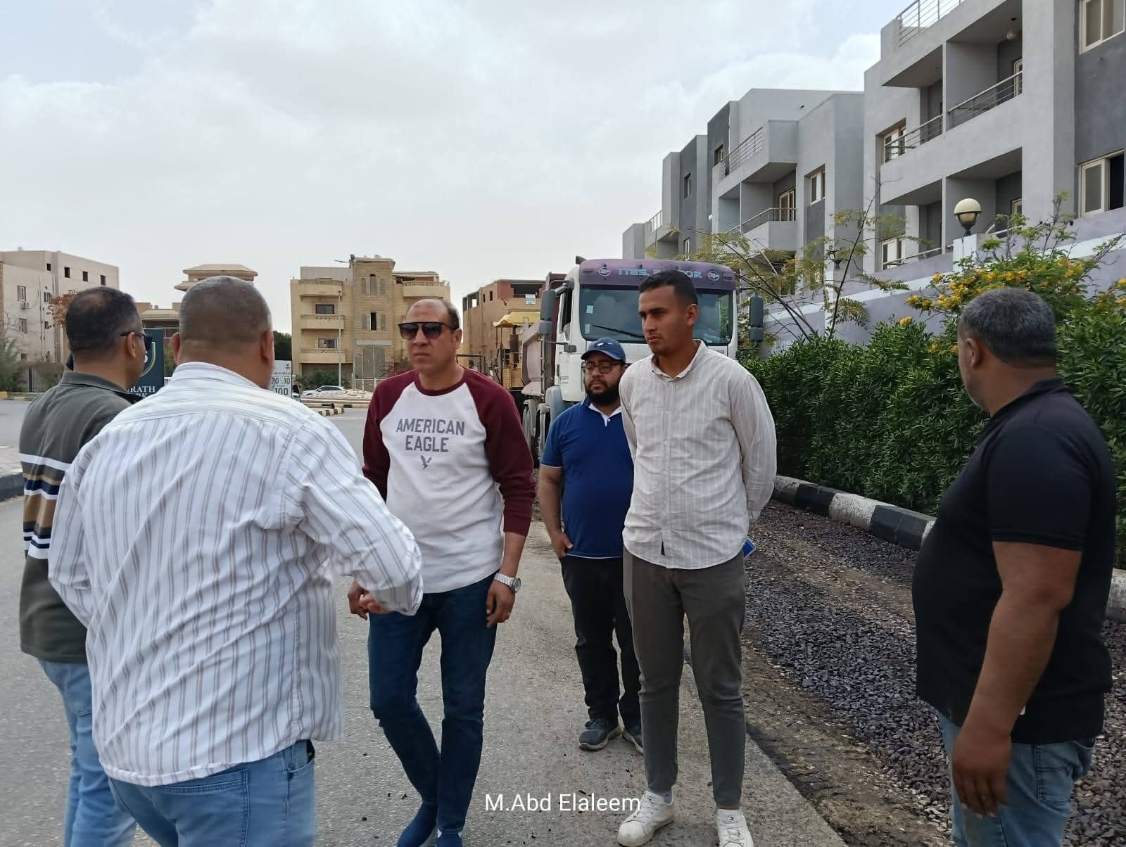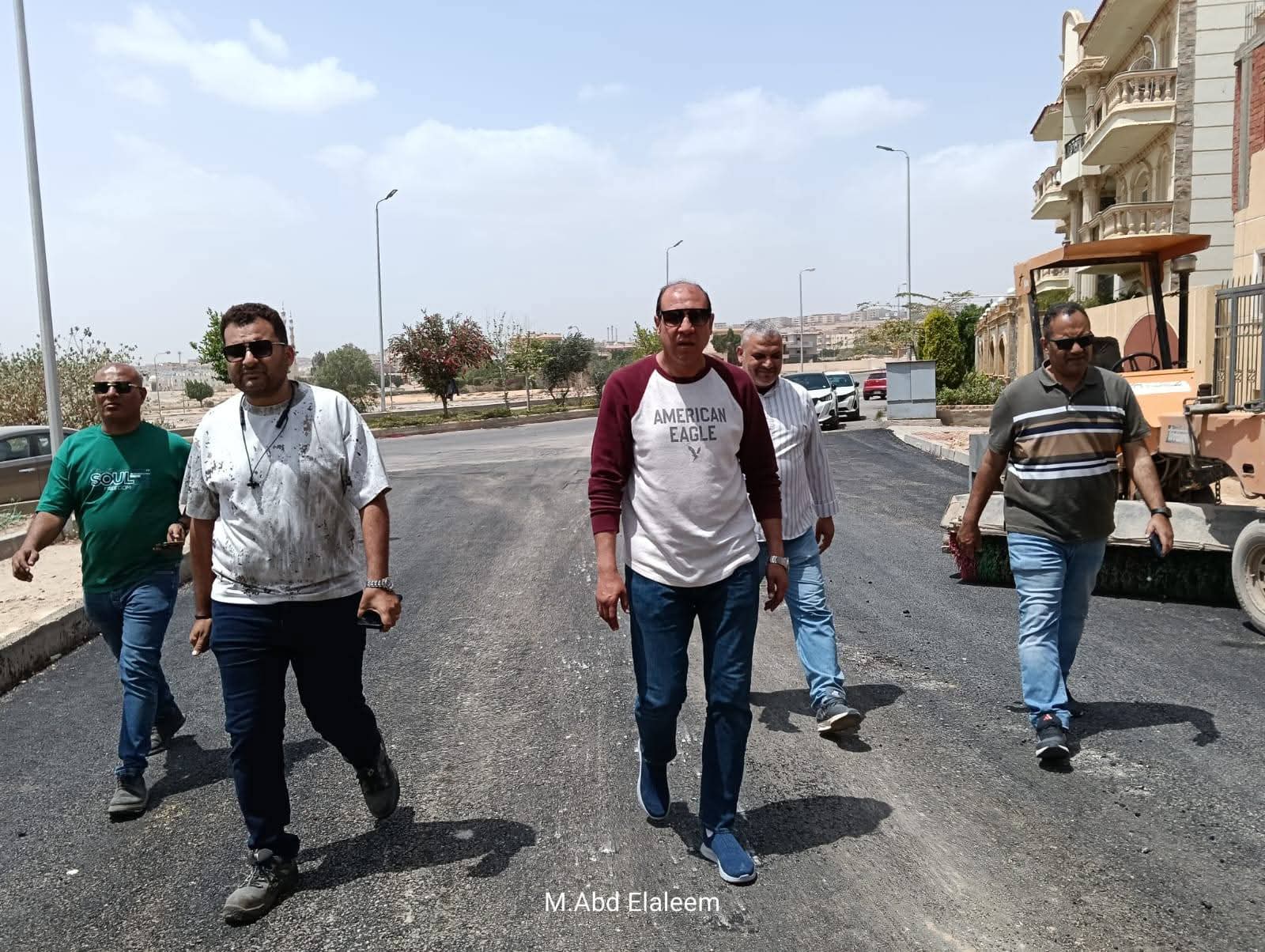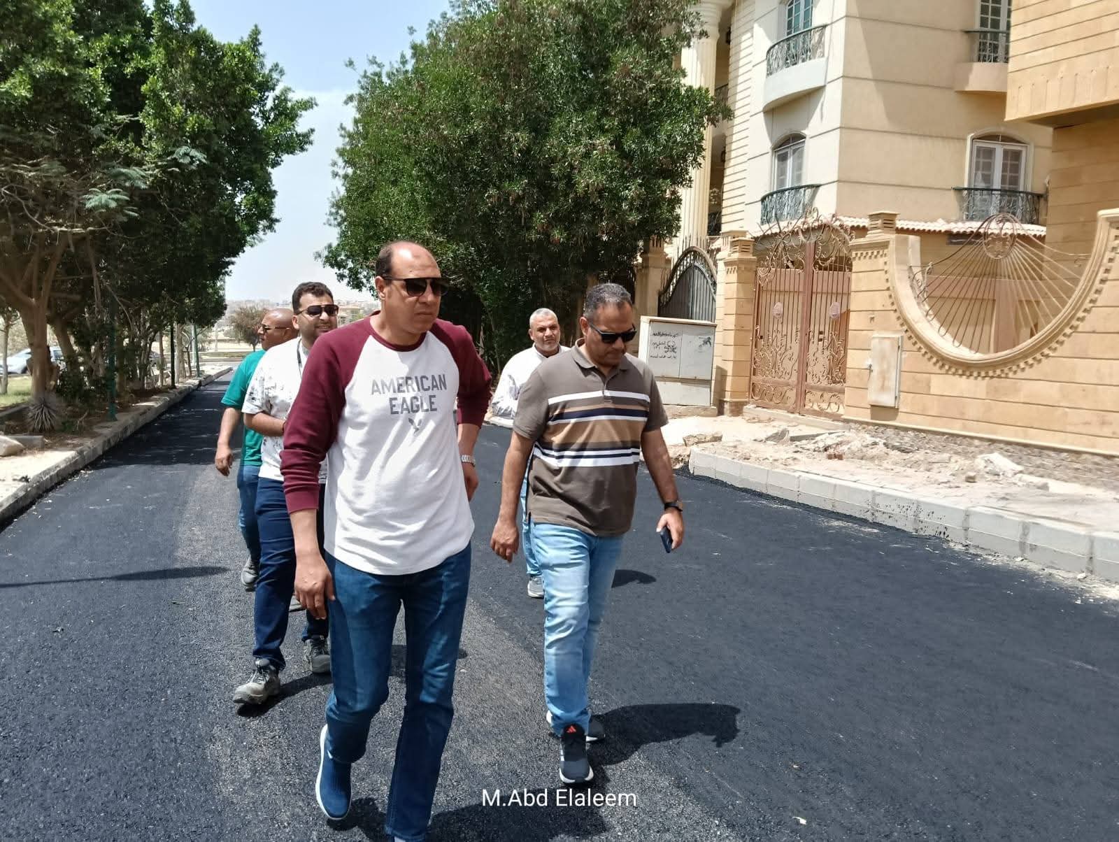 رئيس جهاز مدينة العبور يتابع ميدانيا أعمال تطوير ورفع كفاءة الطرق والأرصفة بالحي الخامس