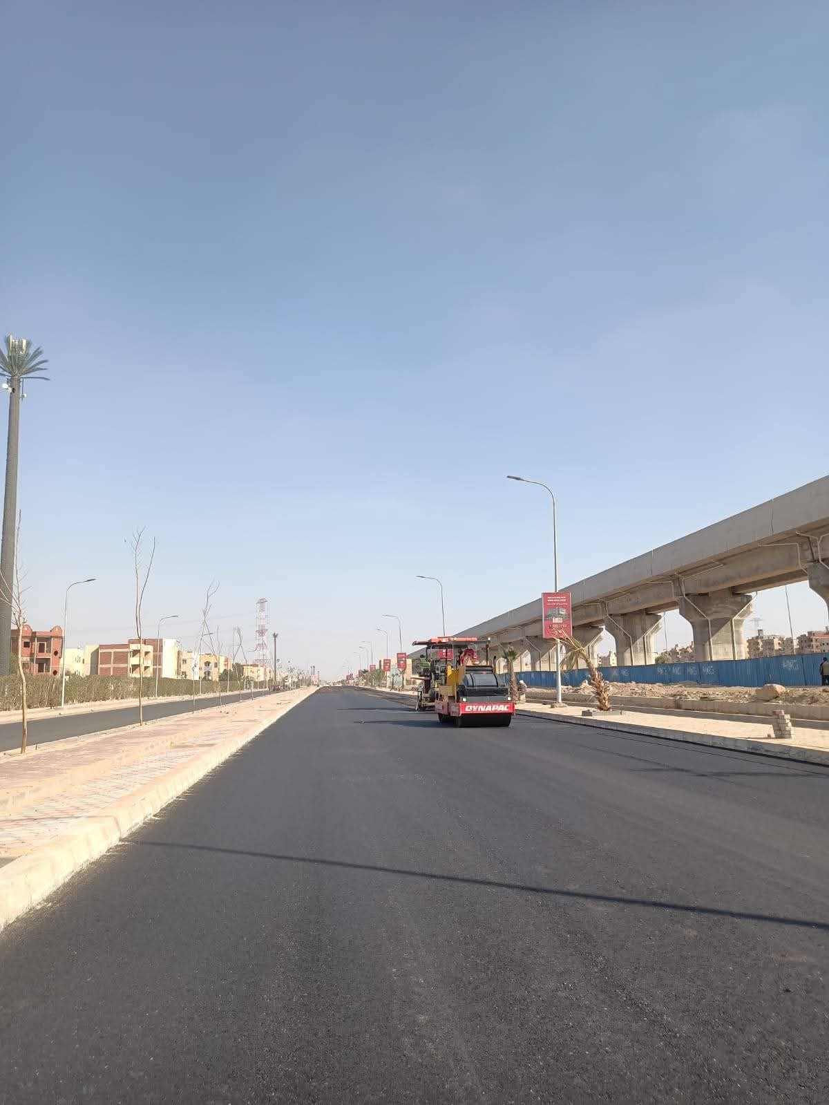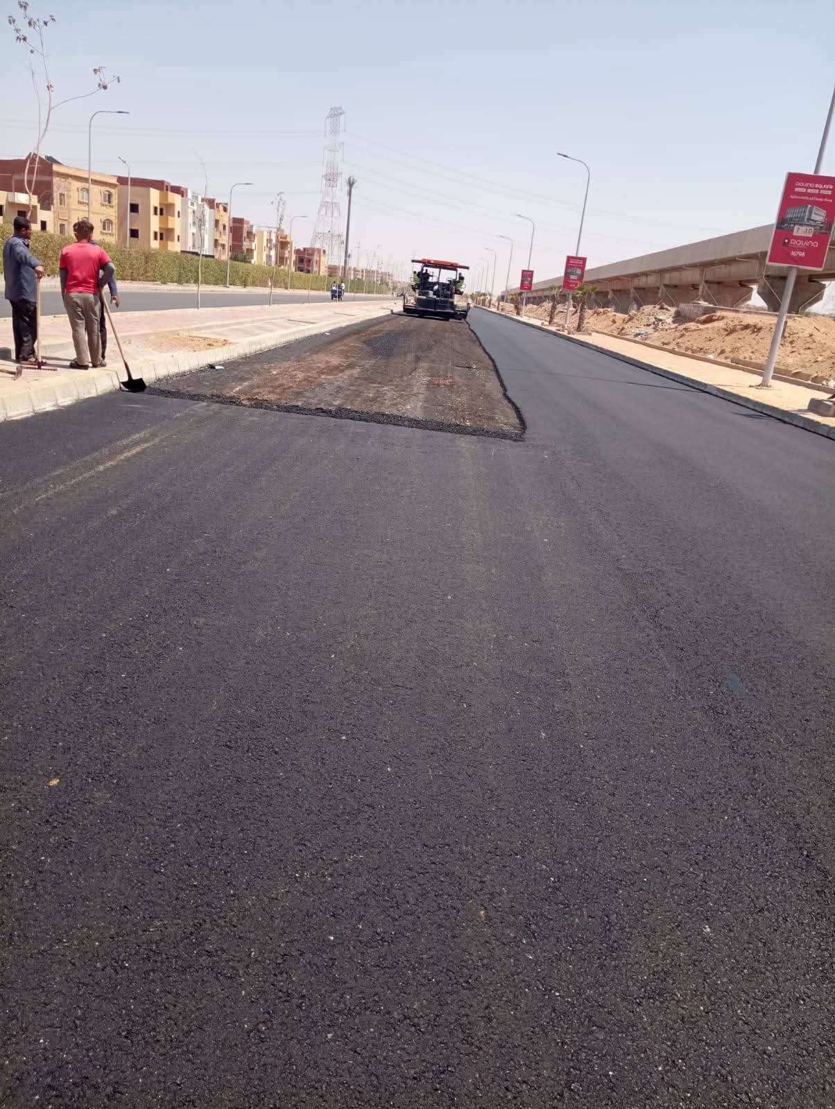 كما تتواصل أعمال إستكمال الأسفلت بطريق «R3» بالحارة المتجهة من وسط المدينة وحتى طريق الفيوم، بمحاذاة مسار القطار السريع، في إطار رفع كفاءة المحاور الحيوية وتحقيق السيولة المرورية.