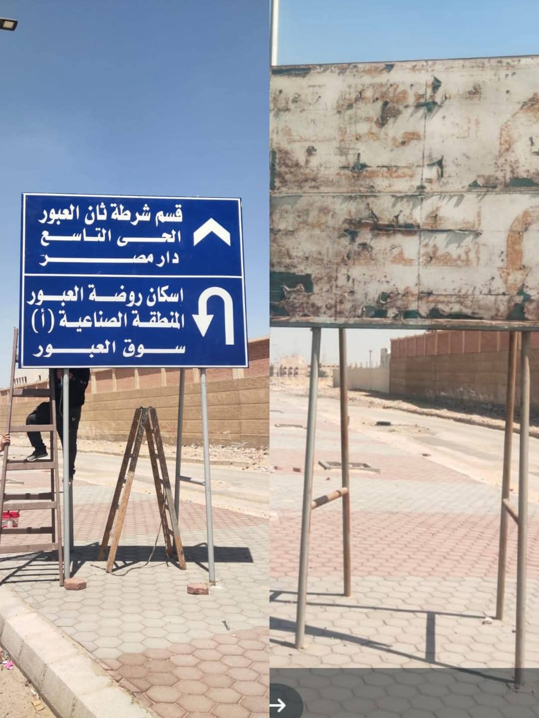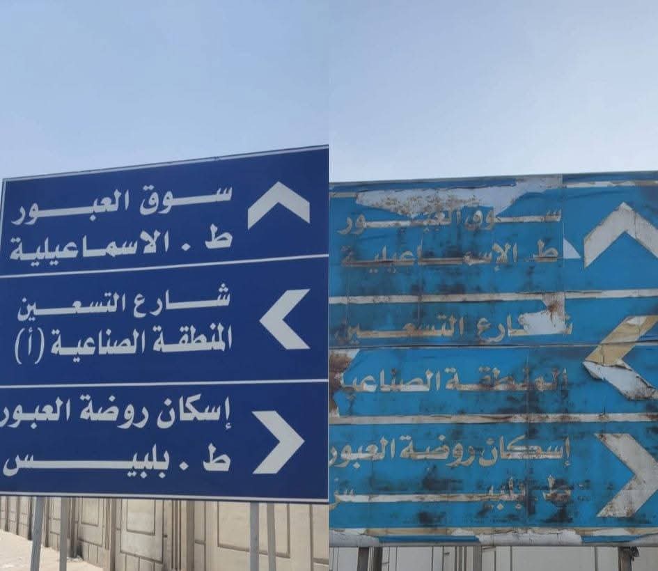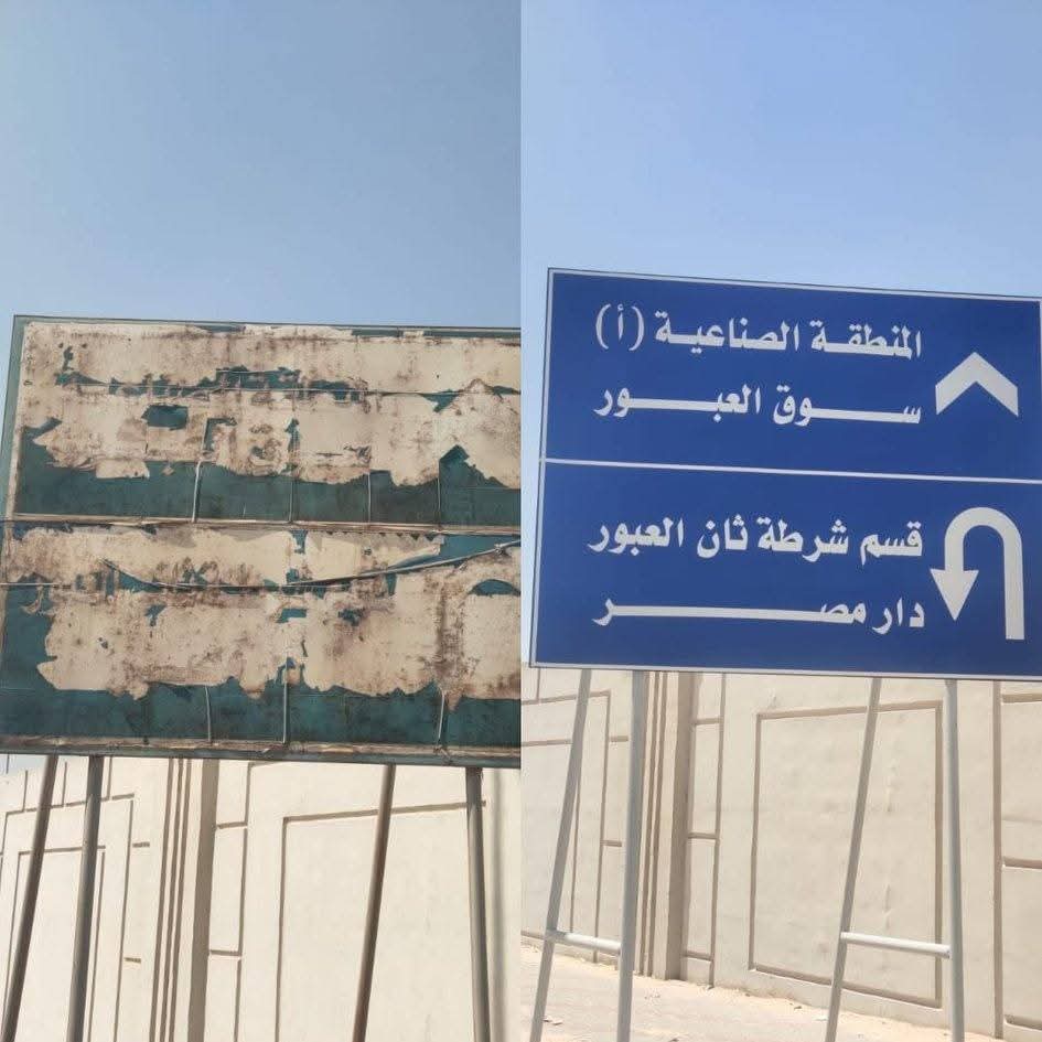 لتعزيز السلامة المرورية.. استمرار رفع كفاءة وصيانة اللوحات الإرشادية والتحذيرية بالعبور