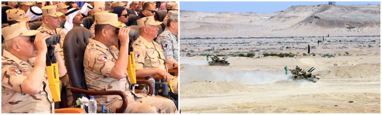 شهد الفريق أشرف سالم زاهر القائد العام للقوات المسلحة وزير الدفاع والإنتاج الحربى المرحلة الرئيسية للمشروع التكتيكى بجنود ( بدر 2026 ) الذى تنفذه إحدى وحدات الجيش الثالث الميدانى بإستخدام الذخيرة الحية ، وذلك بحضور الفريق / أحمد خليفة رئيس أركان حرب القوات المسلحة وقادة الأفرع الرئيسية وعدد من المحافظين وأعضاء مجلسى النواب والشيوخ وعدد من قادة القوات المسلحة والدارسين بالكليات والمعاهد العسكرية والإعلاميين وطلبة الجامعات المصرية .