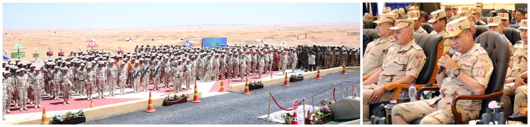 وفى ختام المرحلة نقل القائد العام للقوات المسلحة وزير الدفاع والإنتاج الحربى تحيات وتقدير السيد الرئيس / عبدالفتاح السيسى رئيس الجمهورية القائد الأعلى للقوات المسلحة وإعتزازه بالجهود التى يبذلها رجال القوات المسلحة لتنفيذ كافة المهام والواجبات المكلفين بها ، مؤكداً أن القوات المسلحة تعمل بكل جهد للحفاظ على ما تمتلكه من نظم قتالية وأسلحة ومعدات ، مشيراً إلى حرصها الدائم على بناء المقاتل الشامل الواعى وتدريبه وفقاً لأرقى أساليب التدريب الحديثة ، وأن القوات المسلحة بما تملكه من إمكانات وقدرات بمختلف تخصصاتها قادرة على حماية الوطن وصون مقدساته فى ظل ما تموج به المنطقة من متغيرات وتحديات ، مشيداً بالجاهزية والإستعداد القتالى العالى للعناصر المشاركة بالمشروع وتنفيذ المهام القتالية والنيرانية بدقة وكفاءة عالية ، كما أكد على أن ما تم تنفيذه من أنشطة ومهام تدريبية خلال المشروع يبعث برسالة طمأنة للشعب المصرى العظيم على قواته المسلحة وإستعدادها القتالى الدائم لحماية الأمن القومى المصرى على كافة الإتجاهات الإستراتيجية .