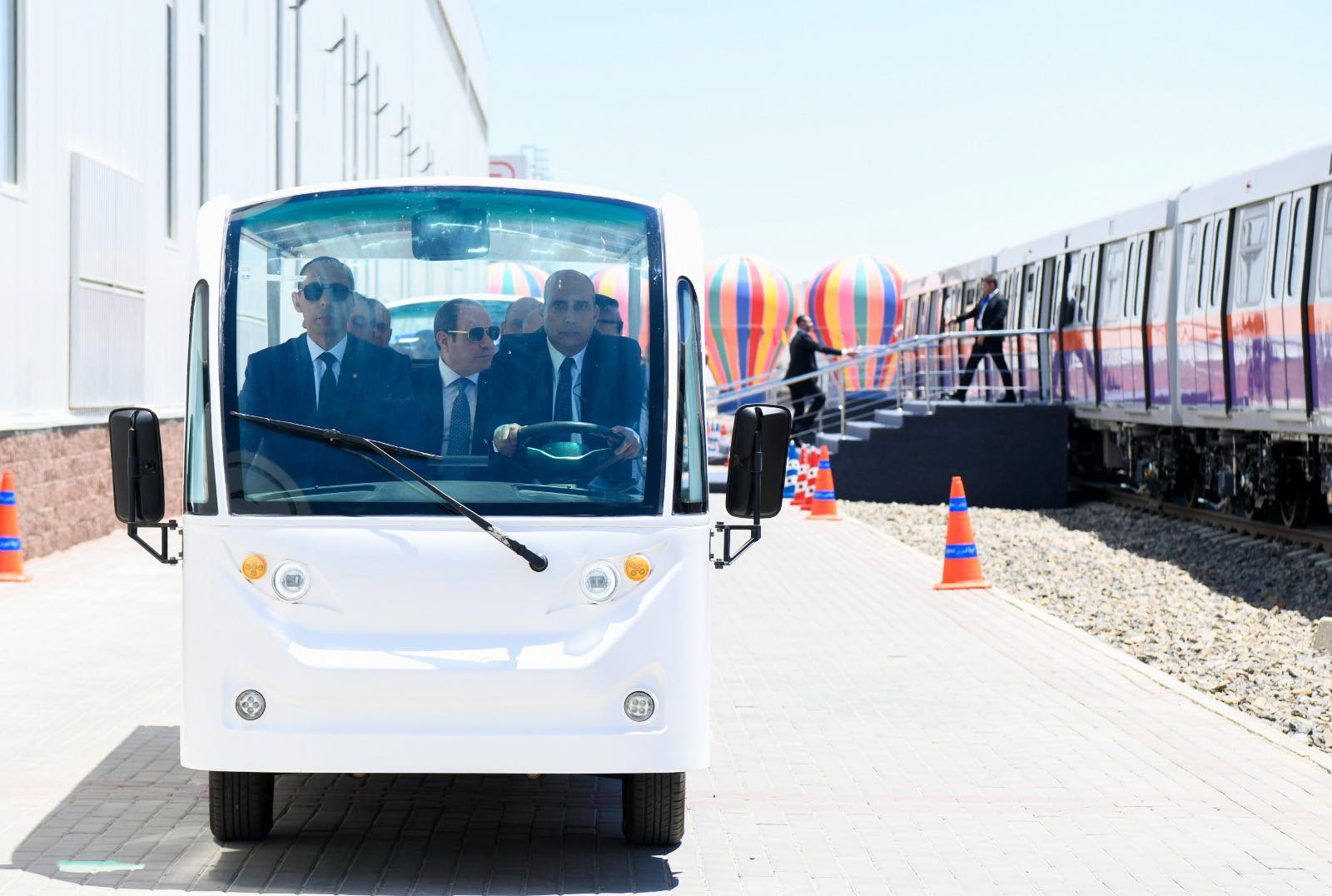 الرئيس السيسي يتفقد عربة مترو شركة نيرك ويلتقط صورة تذكارية مع العمال