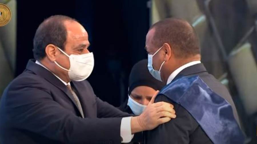 كرم الرئيس عبد الفتاح السيسى أسر شهداء ومصابى عمليات حربية خلال الندوة التثقيفية الـ 33 للقوات المسلحة.