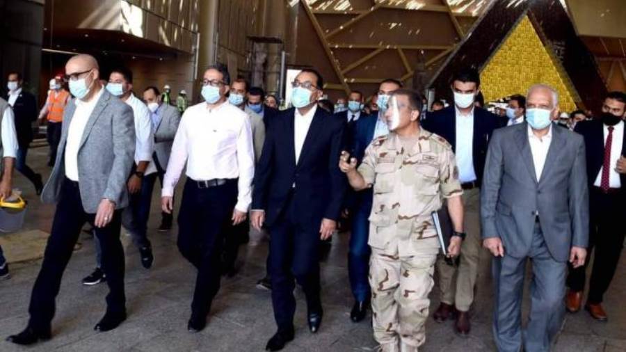 تفقد الدكتور مصطفى مدبولي رئيس مجلس الوزراء صباح اليوم مشروع المتحف المصري الكبير لمتابعة الموقف التنفيذي ومستجدات الأعمال لتطوير المنطقة المحيطة ورافقه الدكتور خالد العناني وزير السياحة والآثار والدكتور عاصم الجزار وزير الإسكان والمرافق والمجتمعات العمرانية