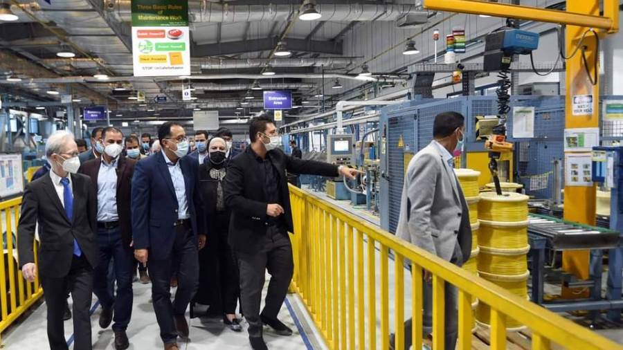 تفقد الدكتور مصطفى مدبولي رئيس مجلس الوزراء ومرافقوه خلال زيارته لمحافظة بورسعيد مصنع إس إي ويرنج سيستمز ا