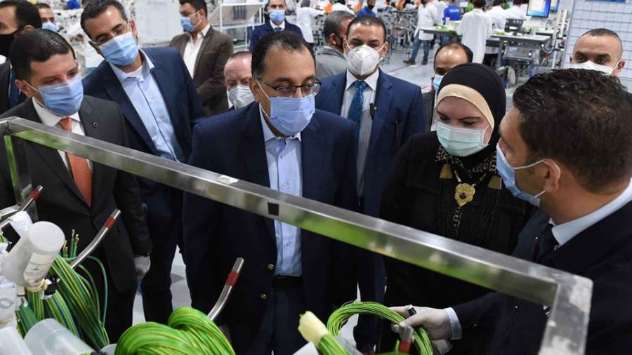 تفقد الدكتور مصطفى مدبولى رئيس الوزراء مصنع لإنتاج الضفائر الإلكترونية للسيارات في مدينة 6 أكتوبر وتابع