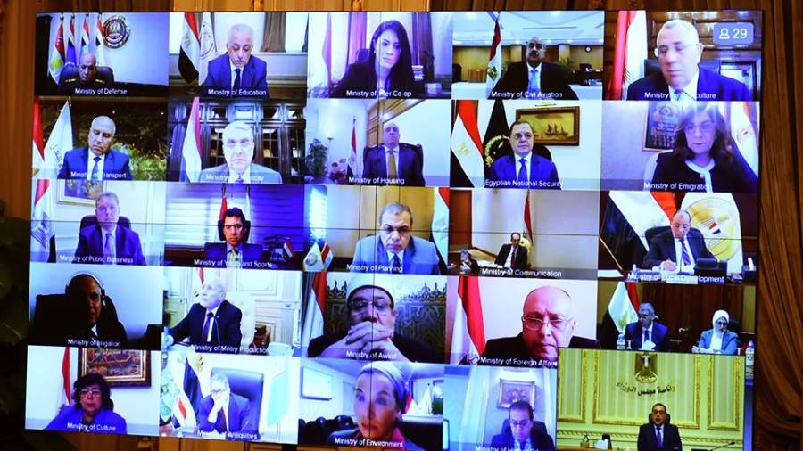 تعقد الحكومة برئاسة الدكتور مصطفى مدبولى رئيس الوزراء اجتماعا بخاصية الفيديو كونفرانس وذلك منعا للاختلاط ضمن