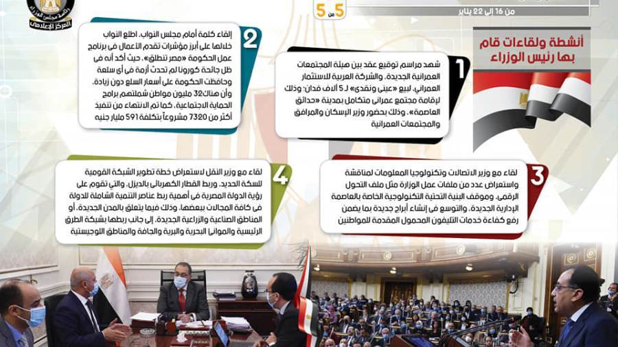 الحصاد الأسبوعي لمجلس الوزراء خلال الفترة من 16 إلى 22 يناير إنفو جراف