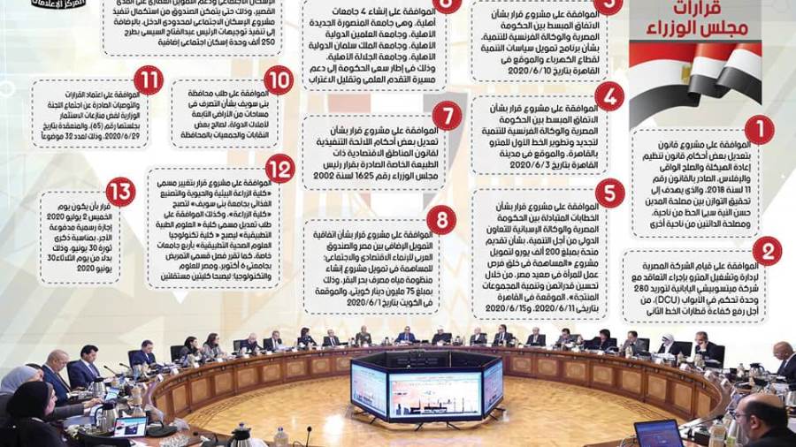 نشر المركز الإعلامي لمجلس الوزراء إنفوجرافا سلط من خلاله الضوء على الحصاد الأسبوعي لمجلس الوزراء وذلك خلال