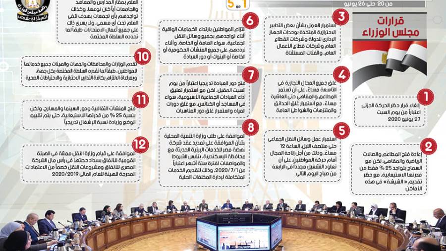 نشر المركز الإعلامي لمجلس الوزراء إنفوجرافا سلط من خلاله الضوء على الحصاد الأسبوعي لمجلس الوزراء وذلك خلال ا