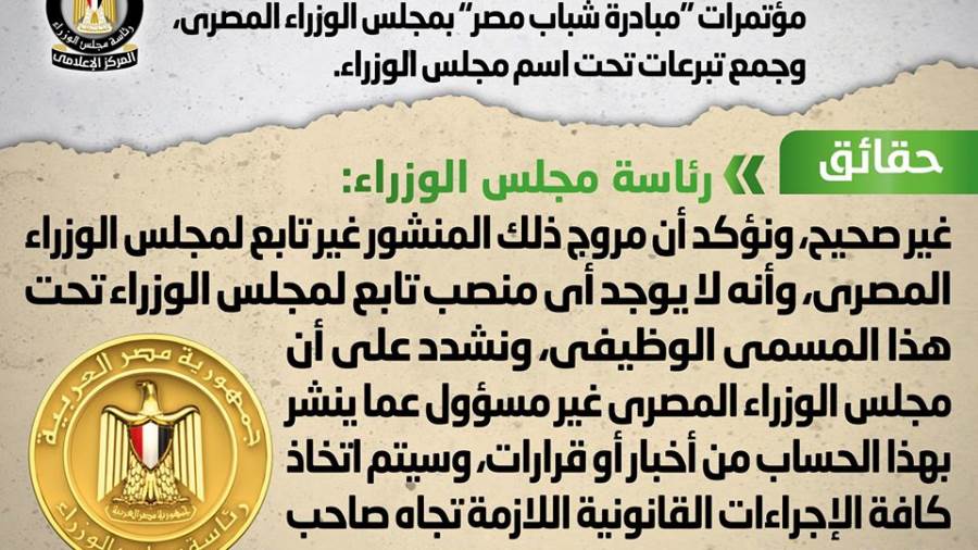 كشف المركز الإعلامى لمجلس الوزراء إنه فى ضوء ما تم تداوله من منشور بشأن تولى أحد الأشخاص منصب مسئول مؤتمرات م